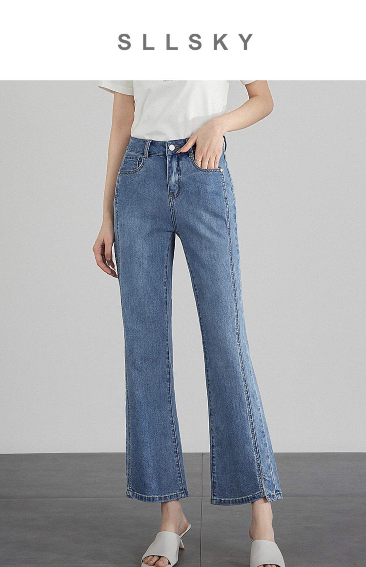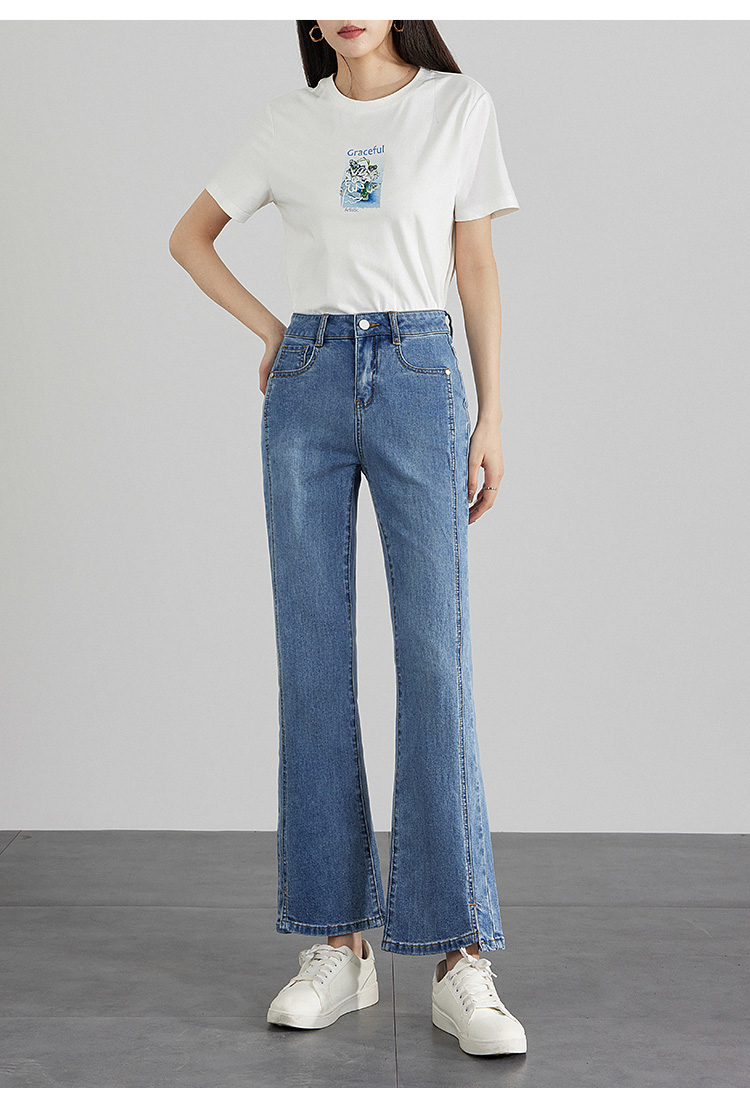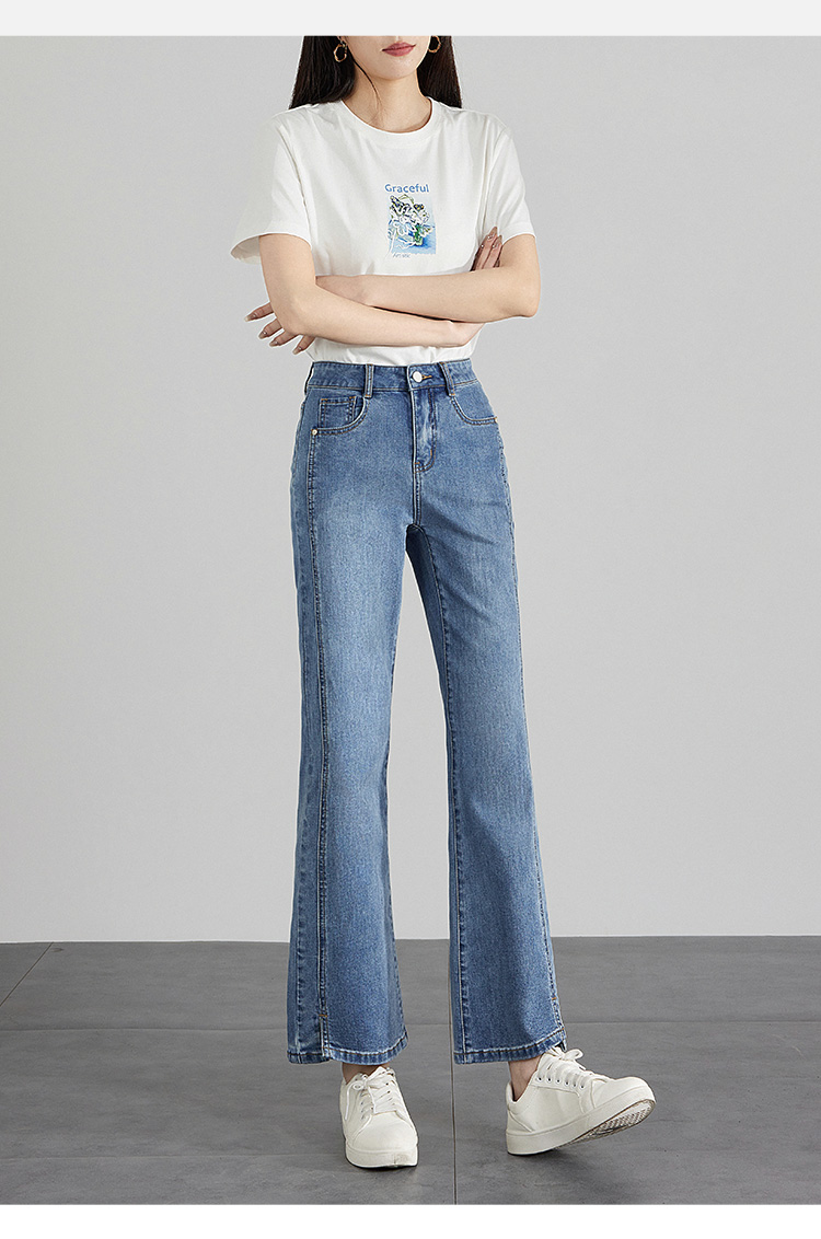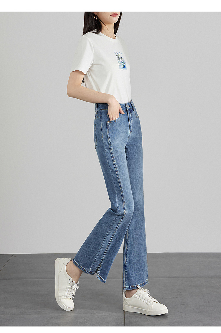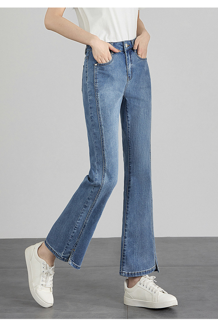 【专属特价】熙世界开衩微喇牛仔裤薄款2025夏季新款通勤修身显瘦微喇叭裤子