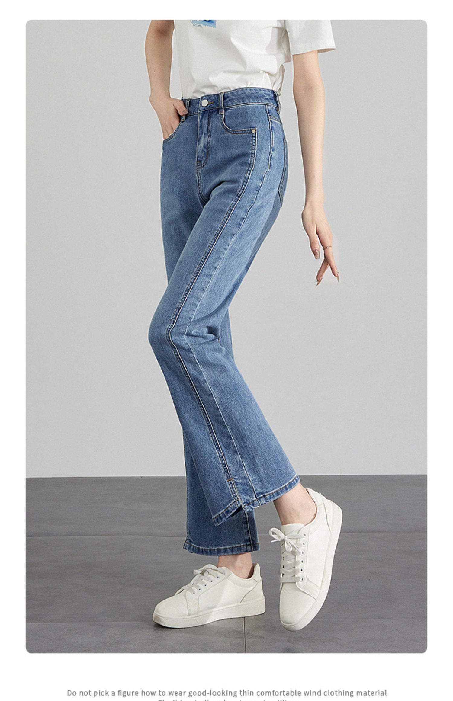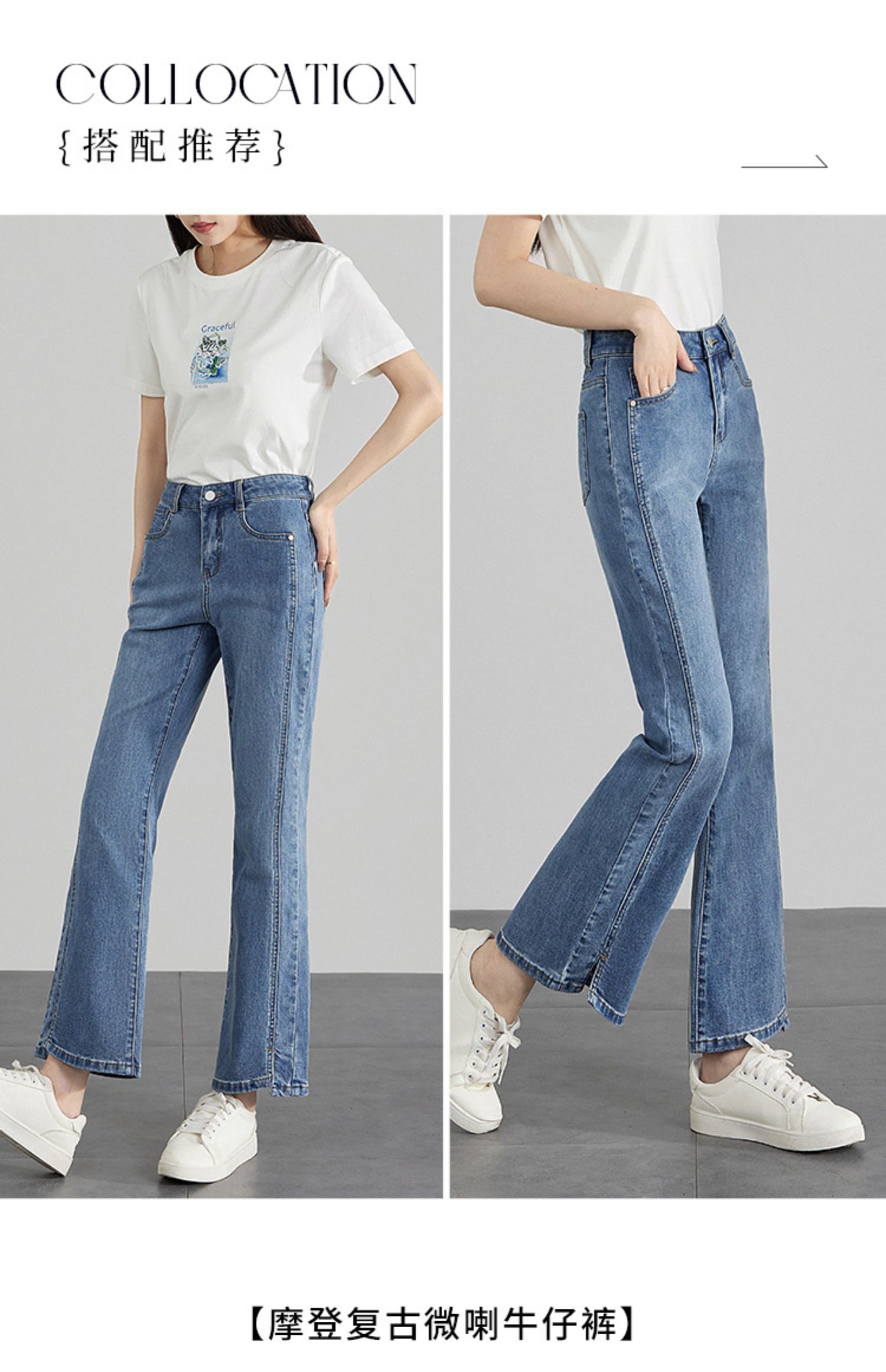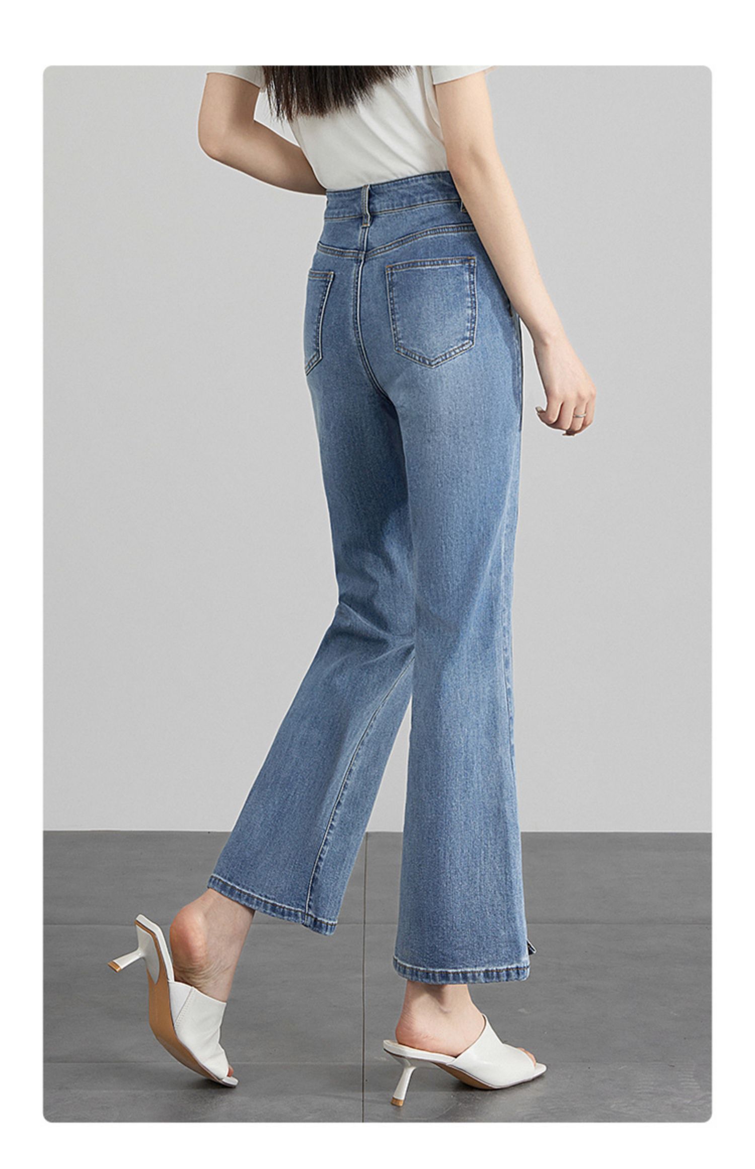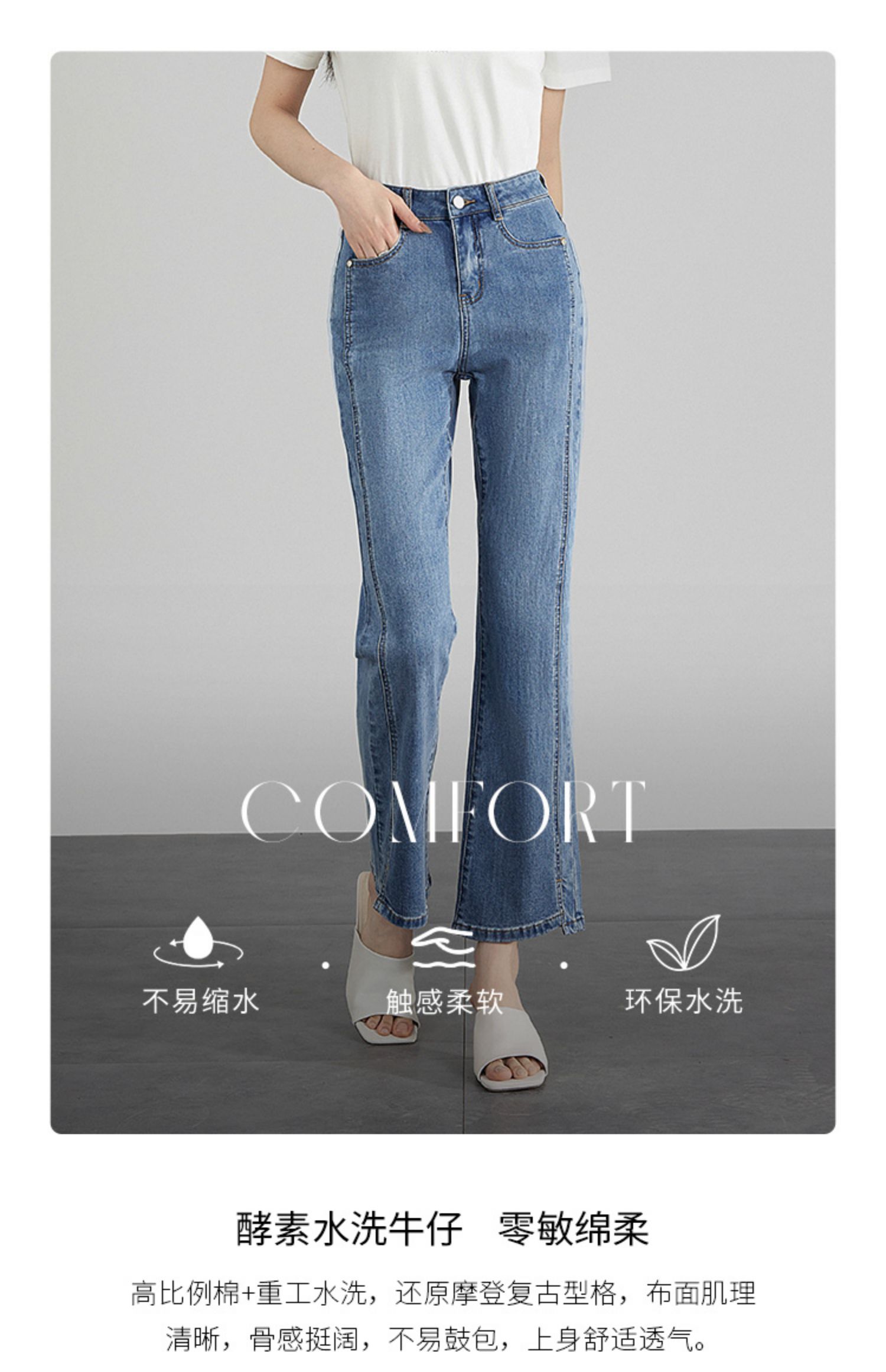 【专属特价】熙世界开衩微喇牛仔裤薄款2025夏季新款通勤修身显瘦微喇叭裤子