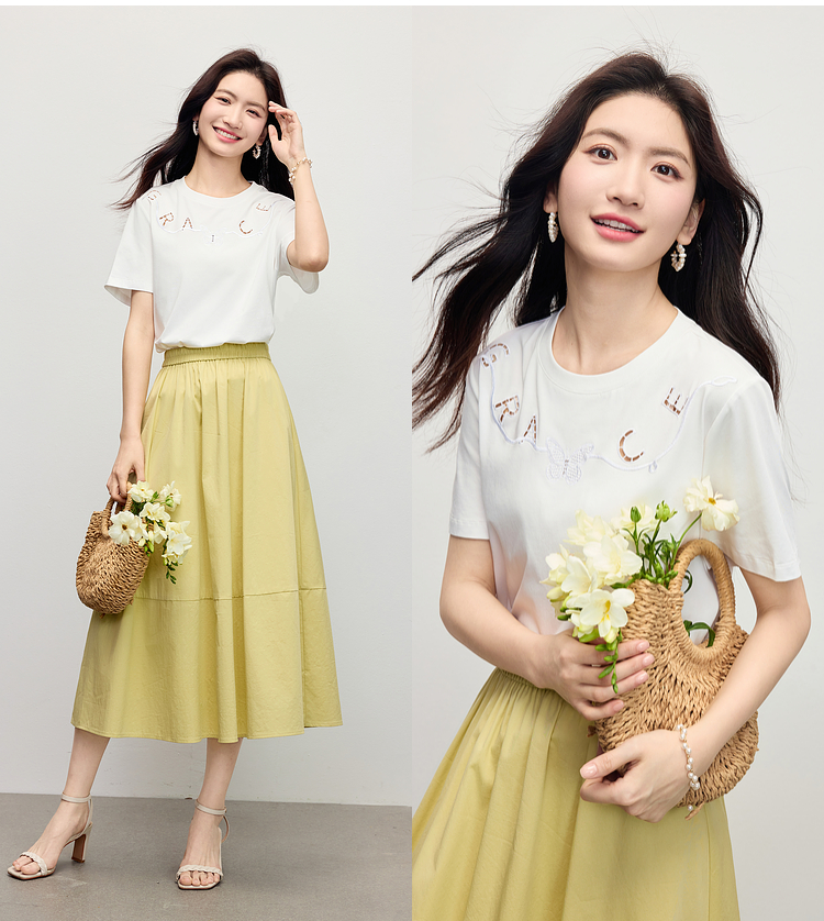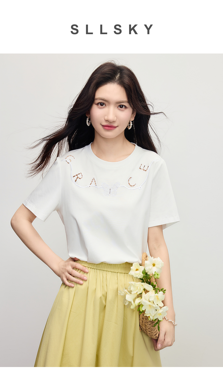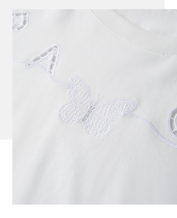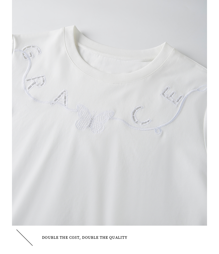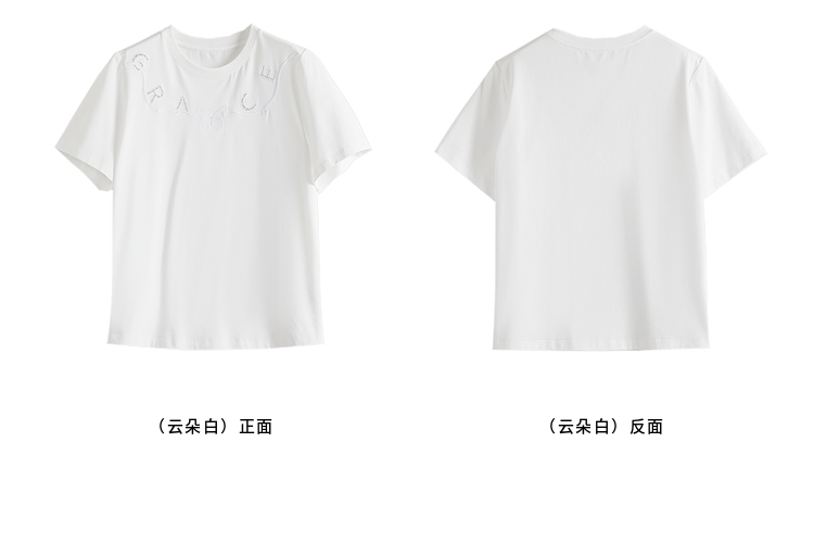【五折购】熙世界镂空字母白色T恤短袖女2025夏季新款通勤休闲宽松显瘦上衣