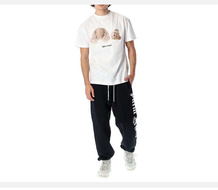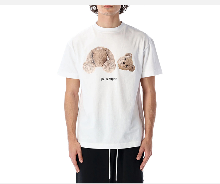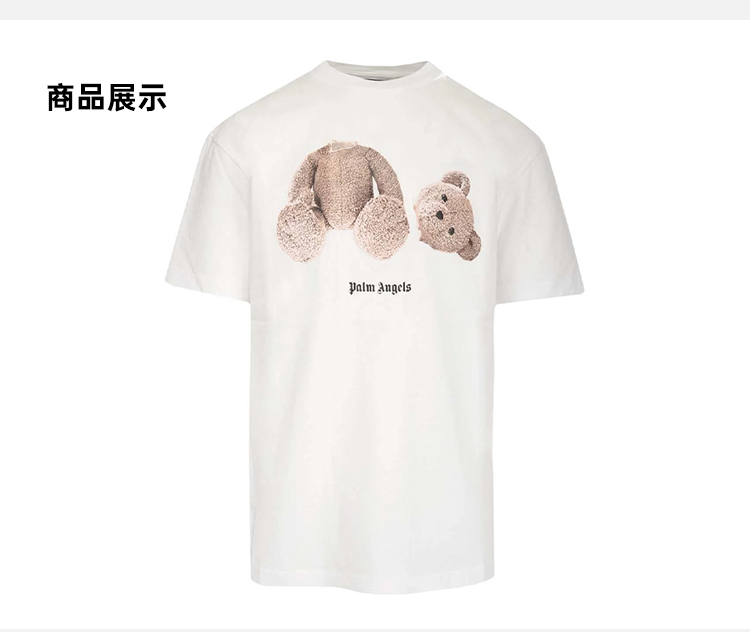 PALM ANGELS 棕榈天使 男士棉质断头熊徽标印花圆领短袖T恤 白色 PMAA001C99JER001 0160