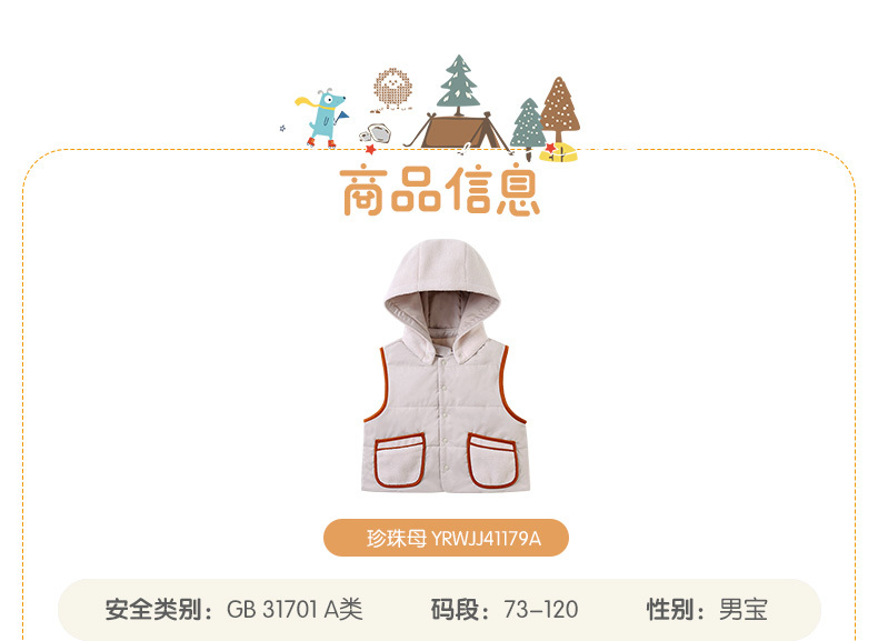 英氏-童衣类(冬)E1英梭帽马夹珍珠母100CM