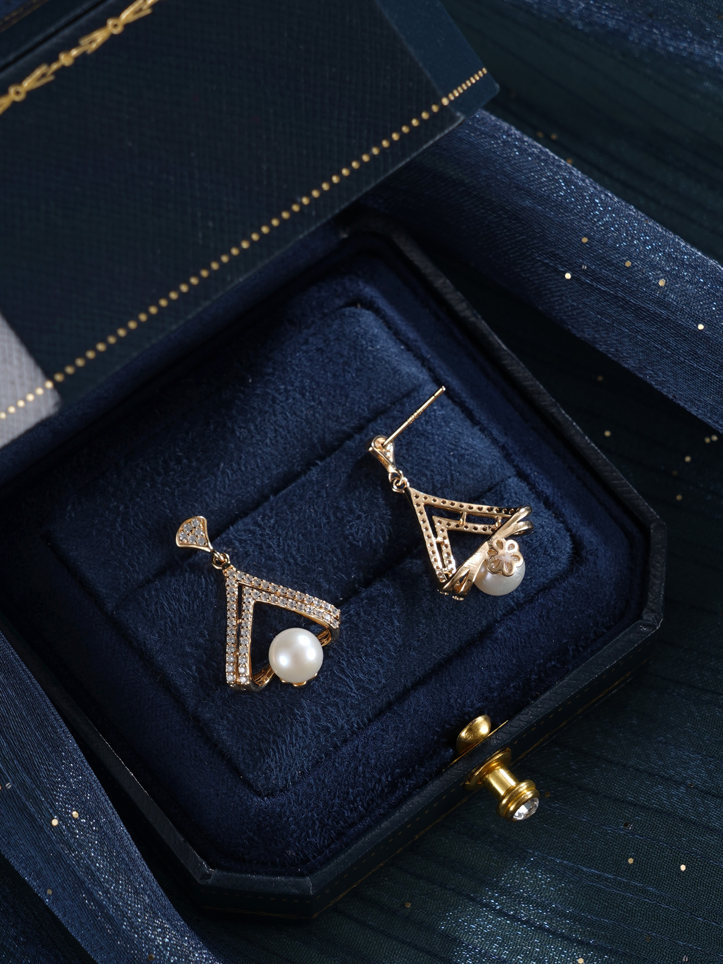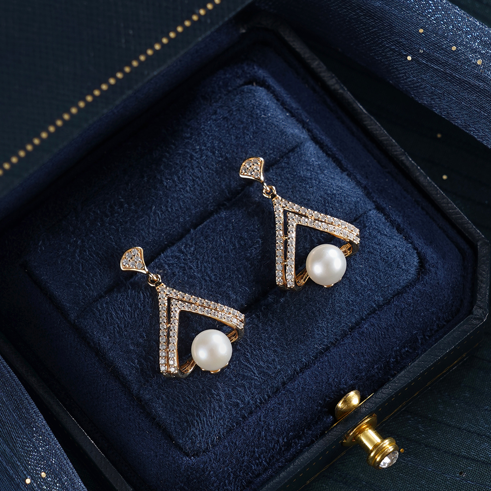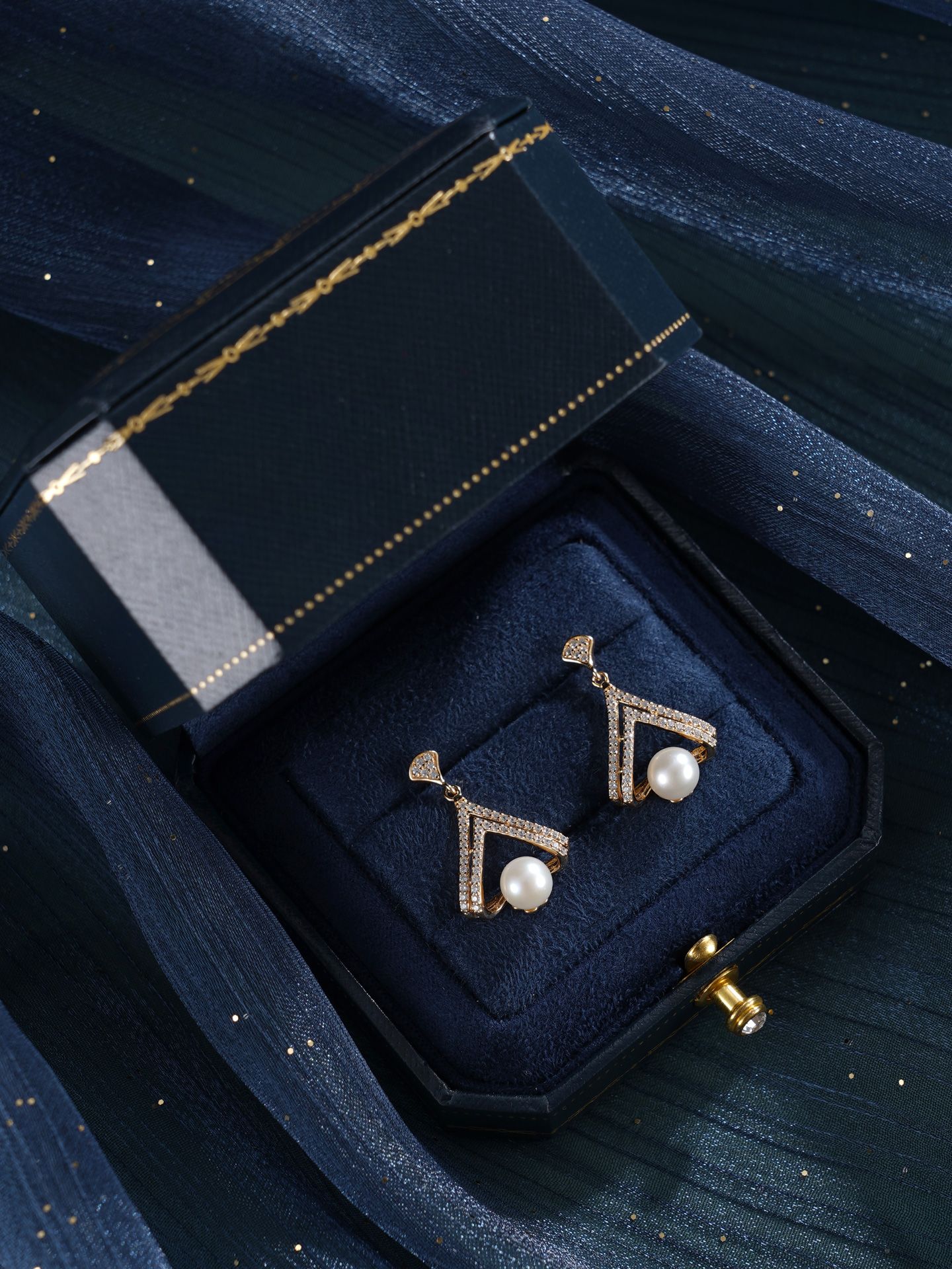 子佩集【流萤舞裙】银S925珍珠惜王妃耳钉【YE0405】6.5mm珠镀金三角银杏叶2601