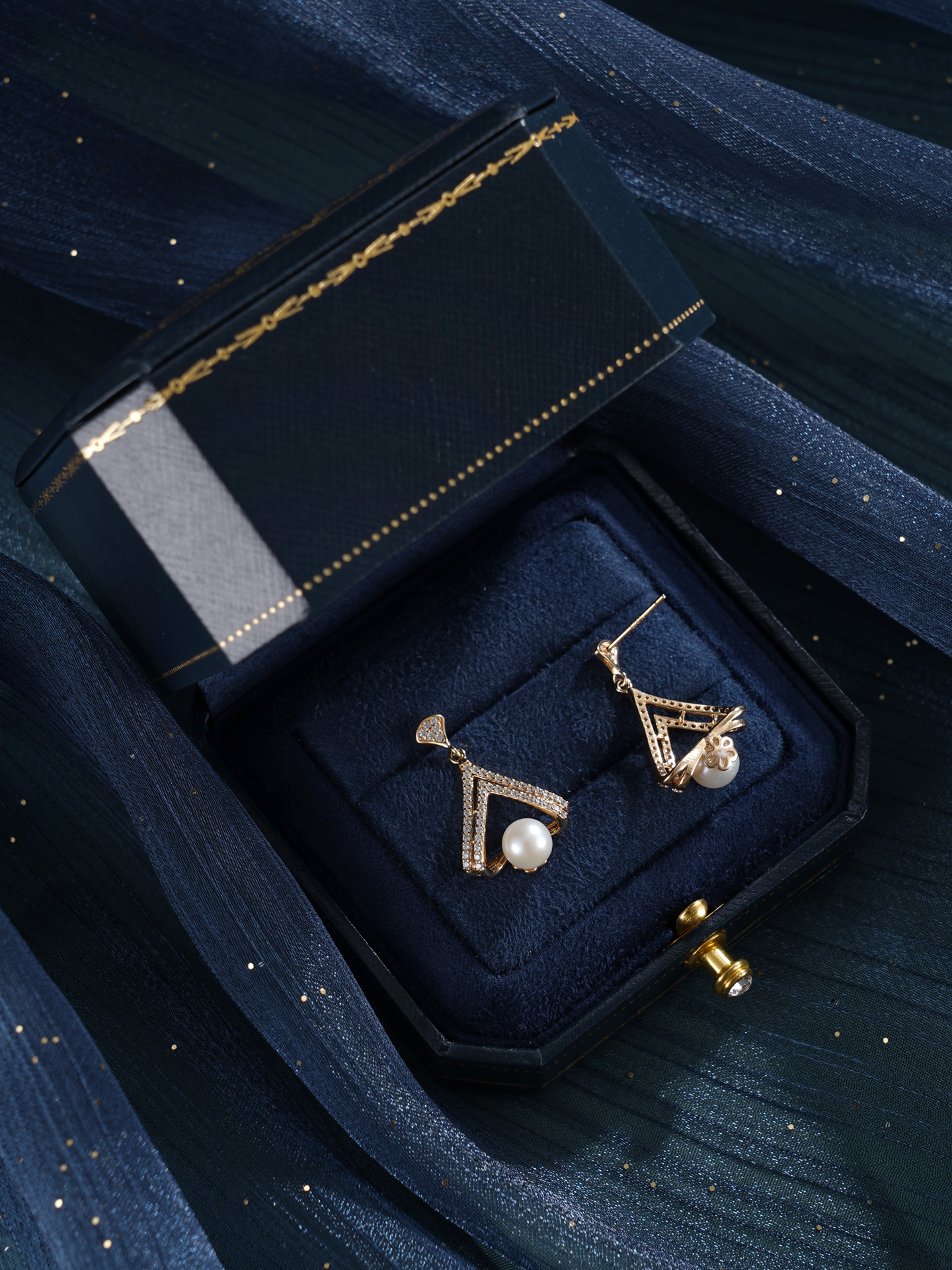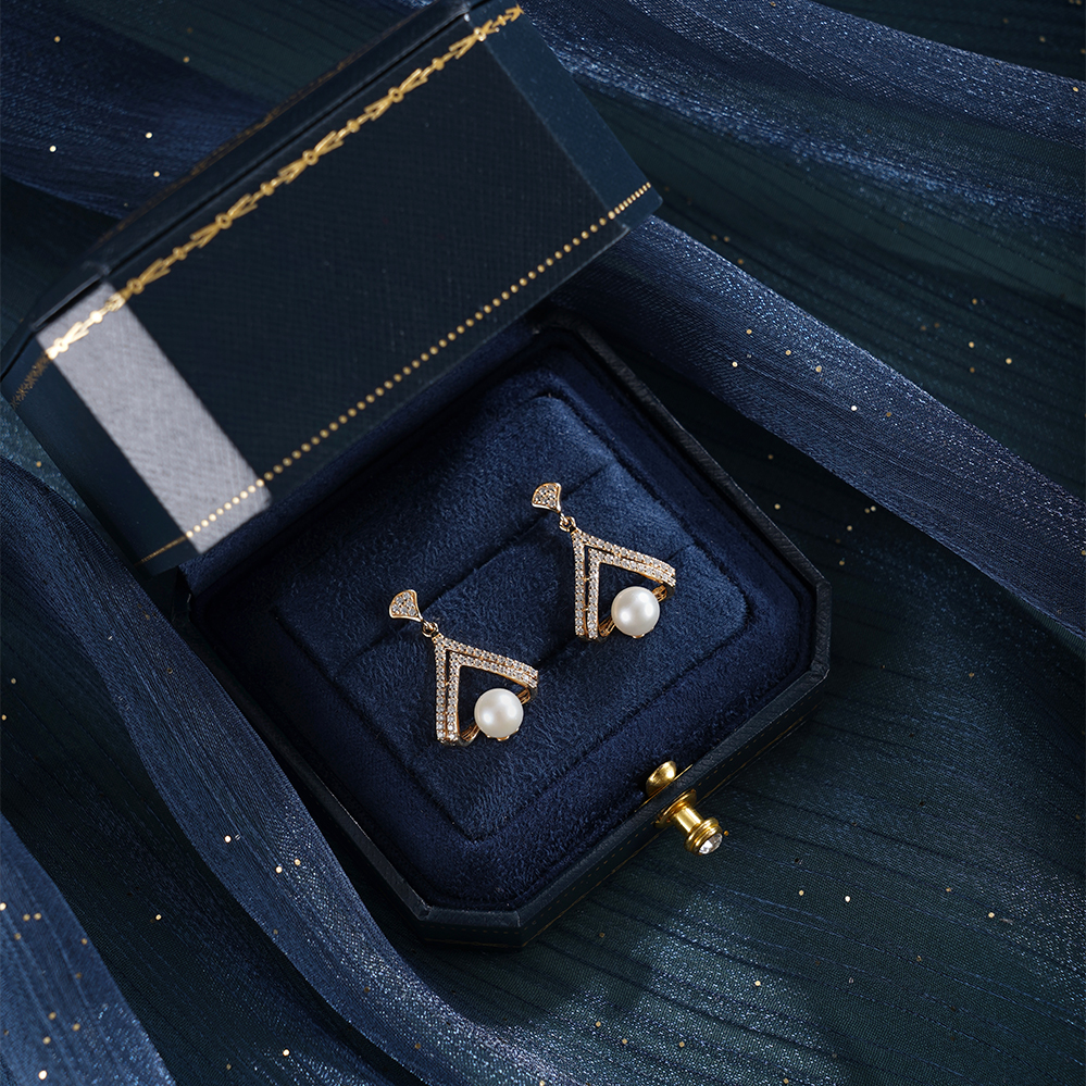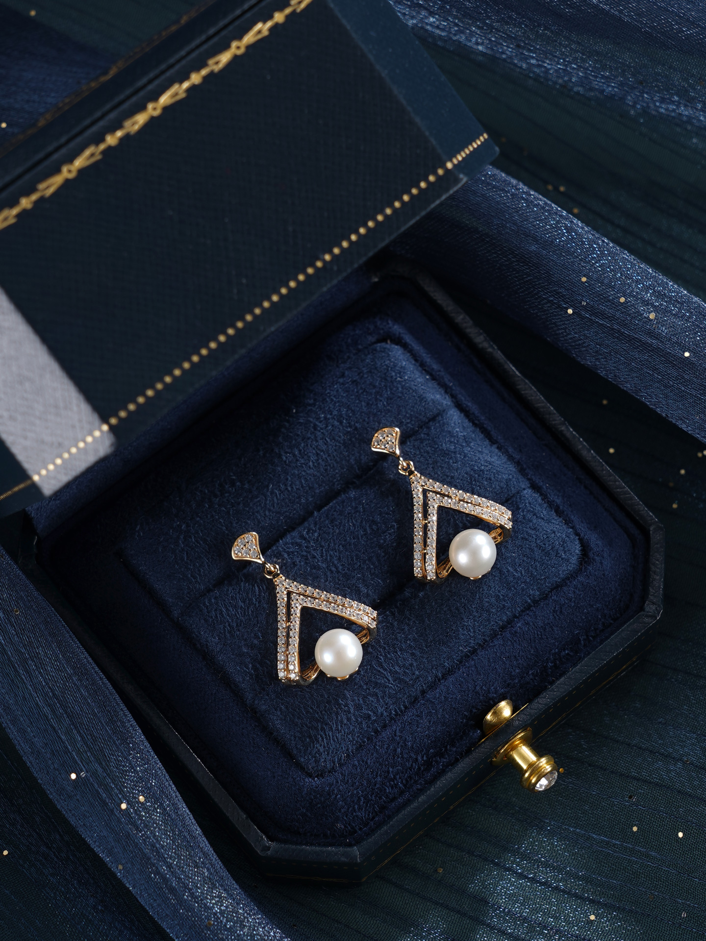 子佩集【流萤舞裙】银S925珍珠惜王妃耳钉【YE0405】6.5mm珠镀金三角银杏叶2601