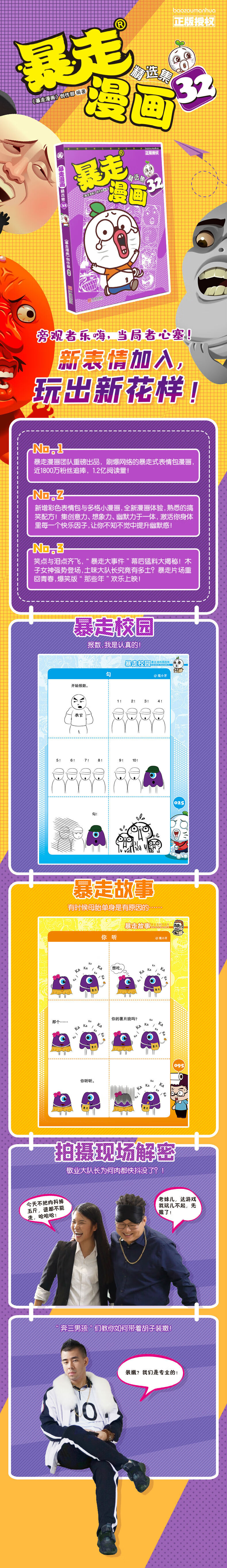 1.《暴走漫画精选集32》全书分为暴走校园、暴走家庭、暴走故事和暴走番外四大板块。女高中生真实的烦恼和虚假的烦恼究竟是什么?跟Ming星做同学的好处你知道吗?连圣诞老人也无法实现的愿望是什么?答案尽在《暴走漫画精选集32》,快来拥有!