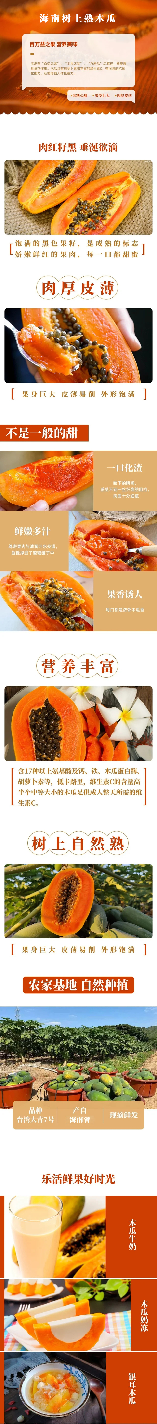 【臻选水果】海南树上熟红心木瓜甜糯可口精品果 五斤装(3-5颗左右) 顺丰快递