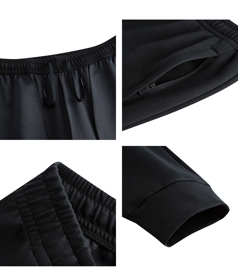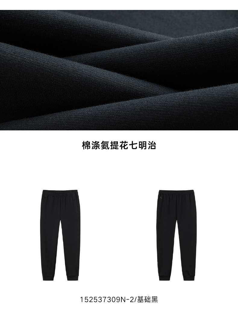 安踏运动长裤男士跑步训练黑色束脚裤弹力卫裤152537309N-2
