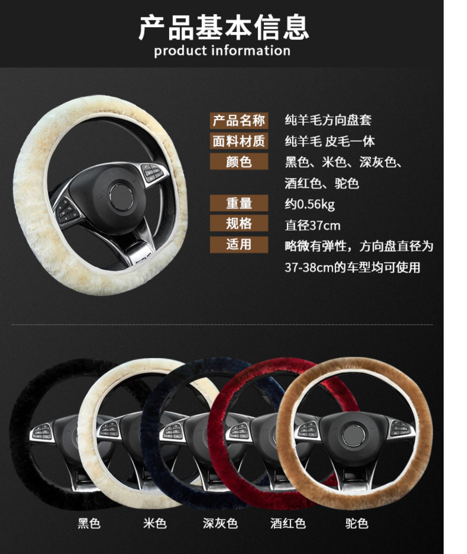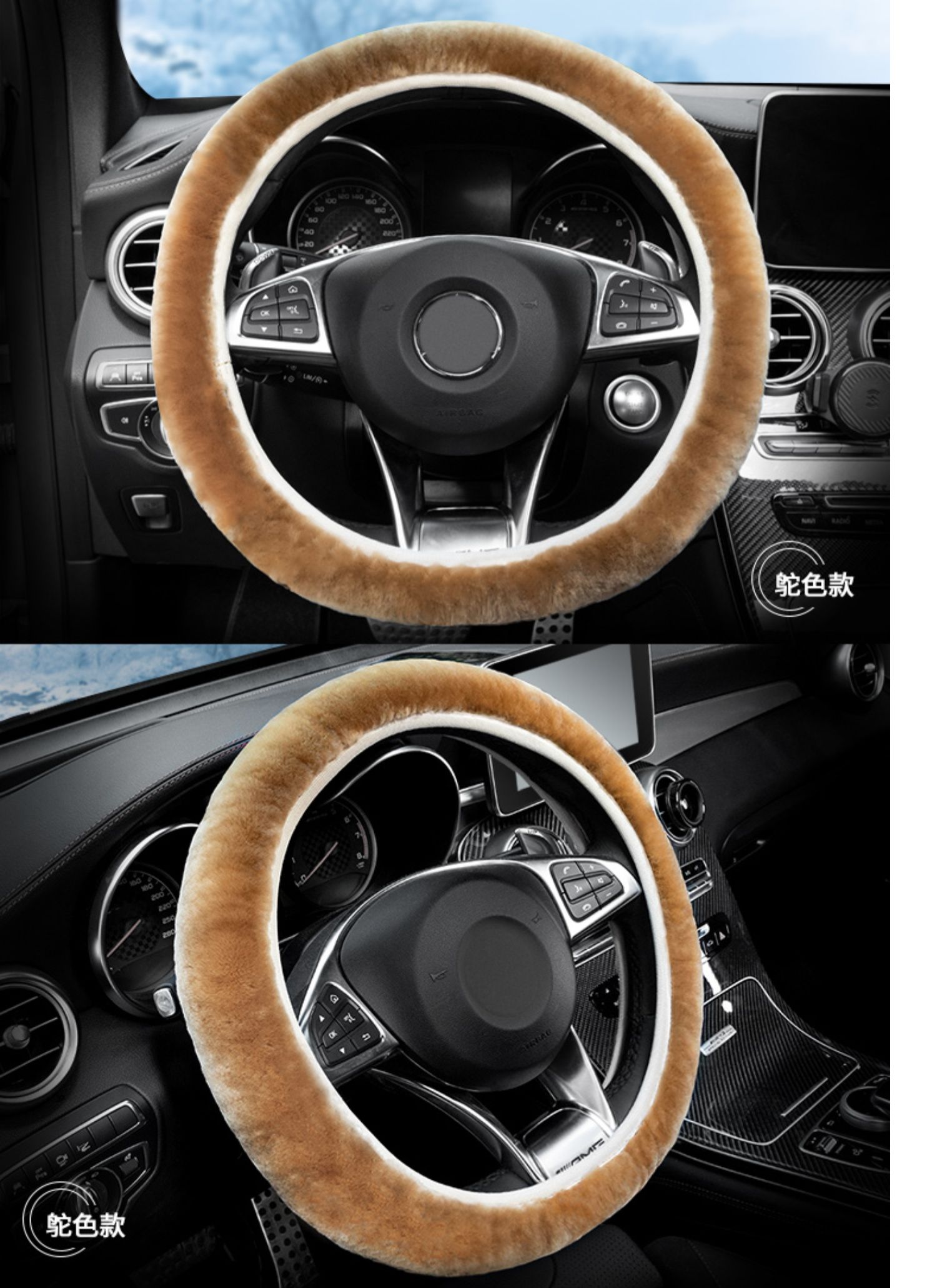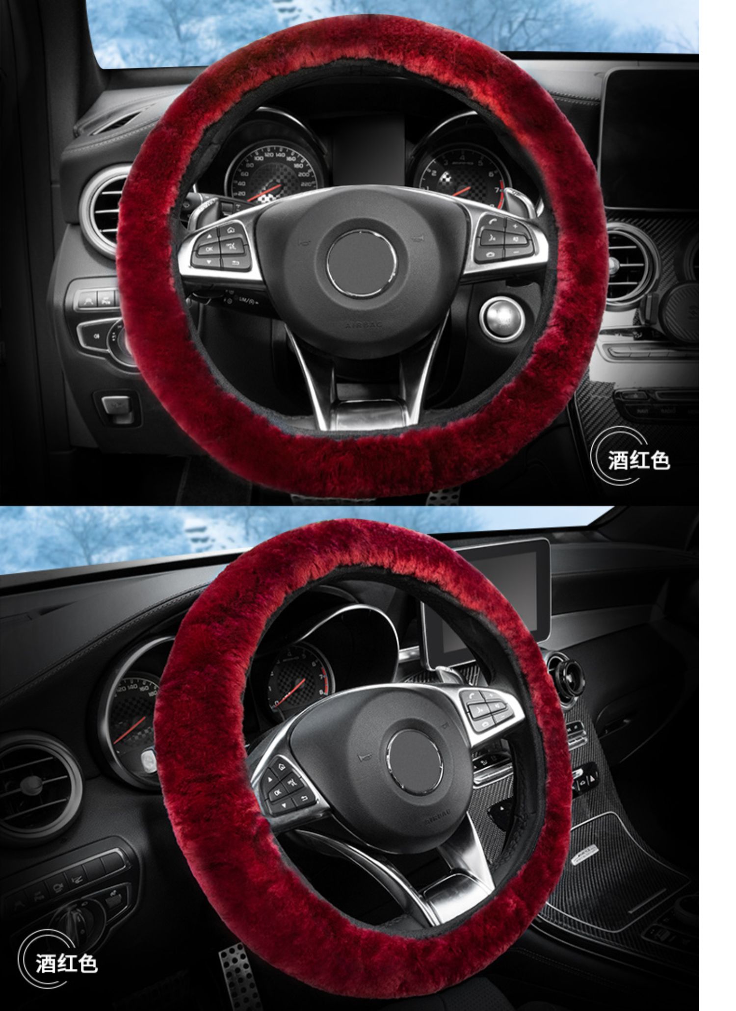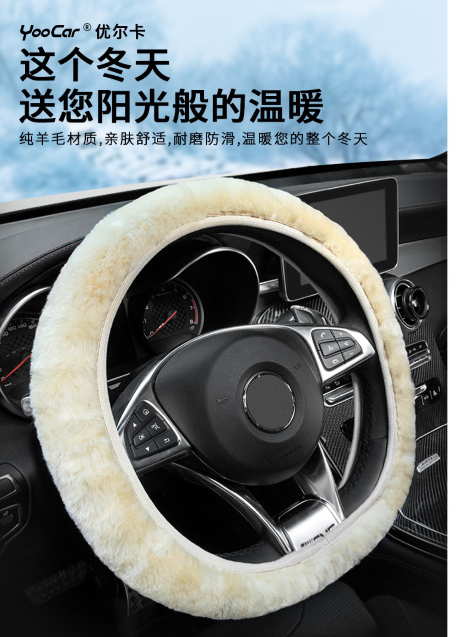 纯羊毛冬季汽车方向盘套毛绒把套大众速腾奔驰宝马奥迪思域轩逸