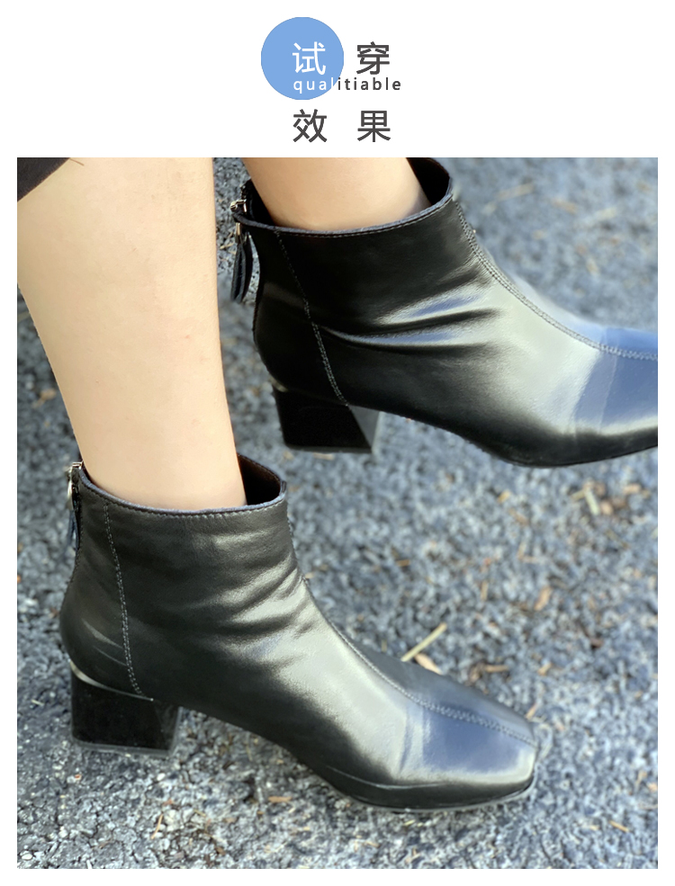 【百图lulu定制】【法式短靴】牛皮 显瘦显高 中跟 可帅气可优雅 小个子 短靴