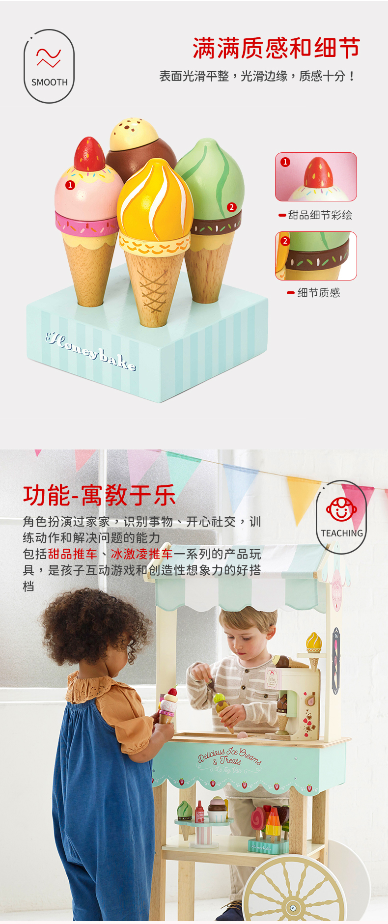 英国Le Toy Van卡罗 冰淇淋 马卡龙 冰棍 蛋糕过家家玩具儿童 2岁+