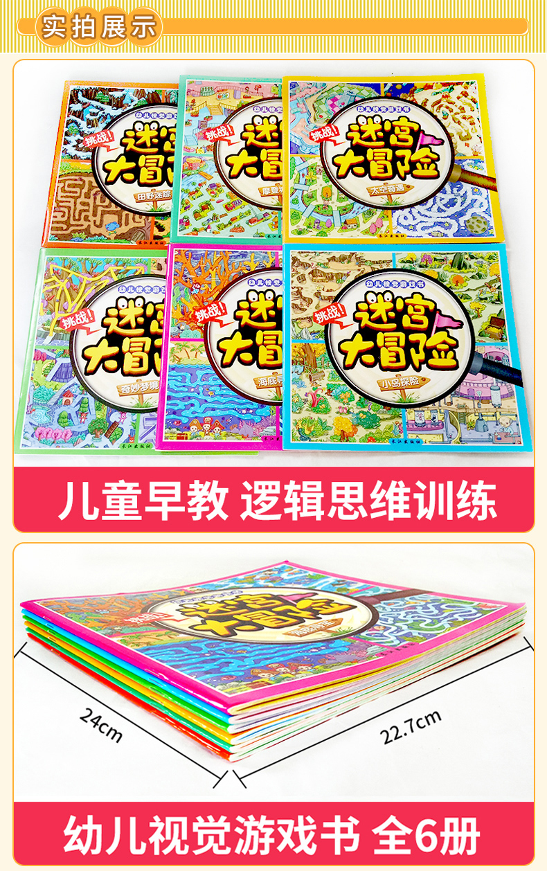 迷宫大冒险全套6册幼儿早教书籍儿童益智游戏绘本0-3-6岁宝宝图画捉迷藏逻辑思维专注力训练益智书籍开发大脑玩转大迷宫益智早教书