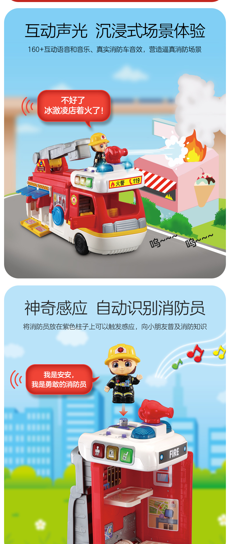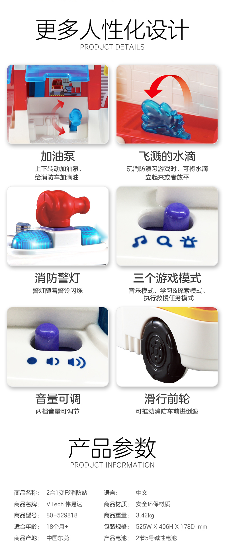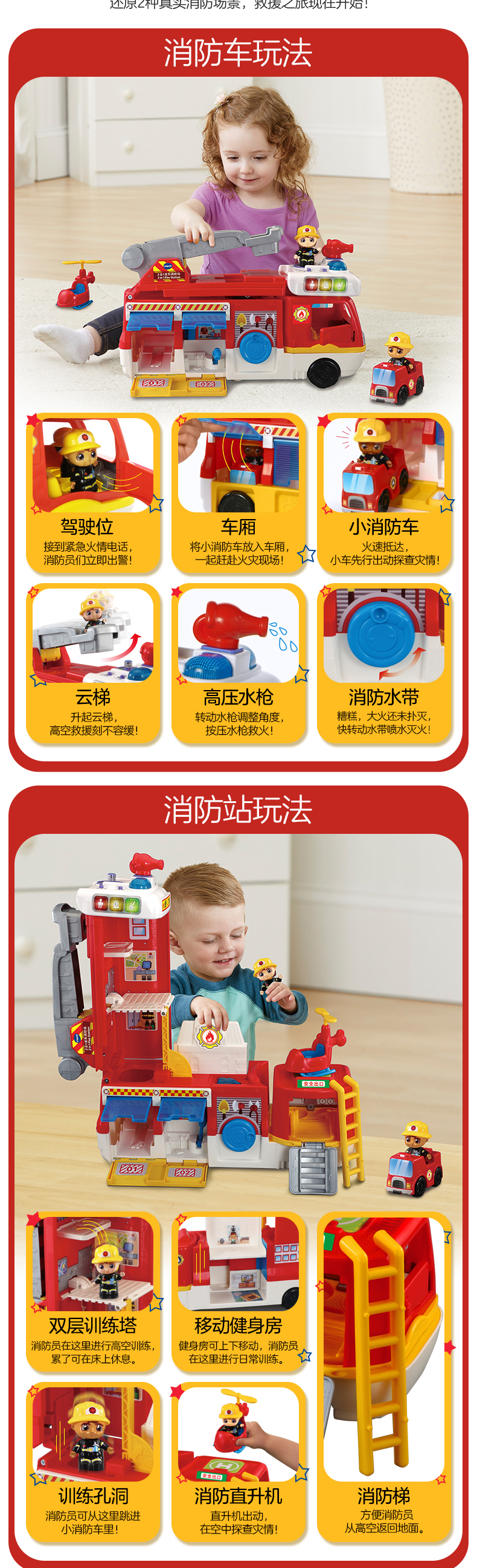 18月+ | VTech伟易达 2合1变形消防站场景过家家安全知识玩具儿童益智交通救援车玩具