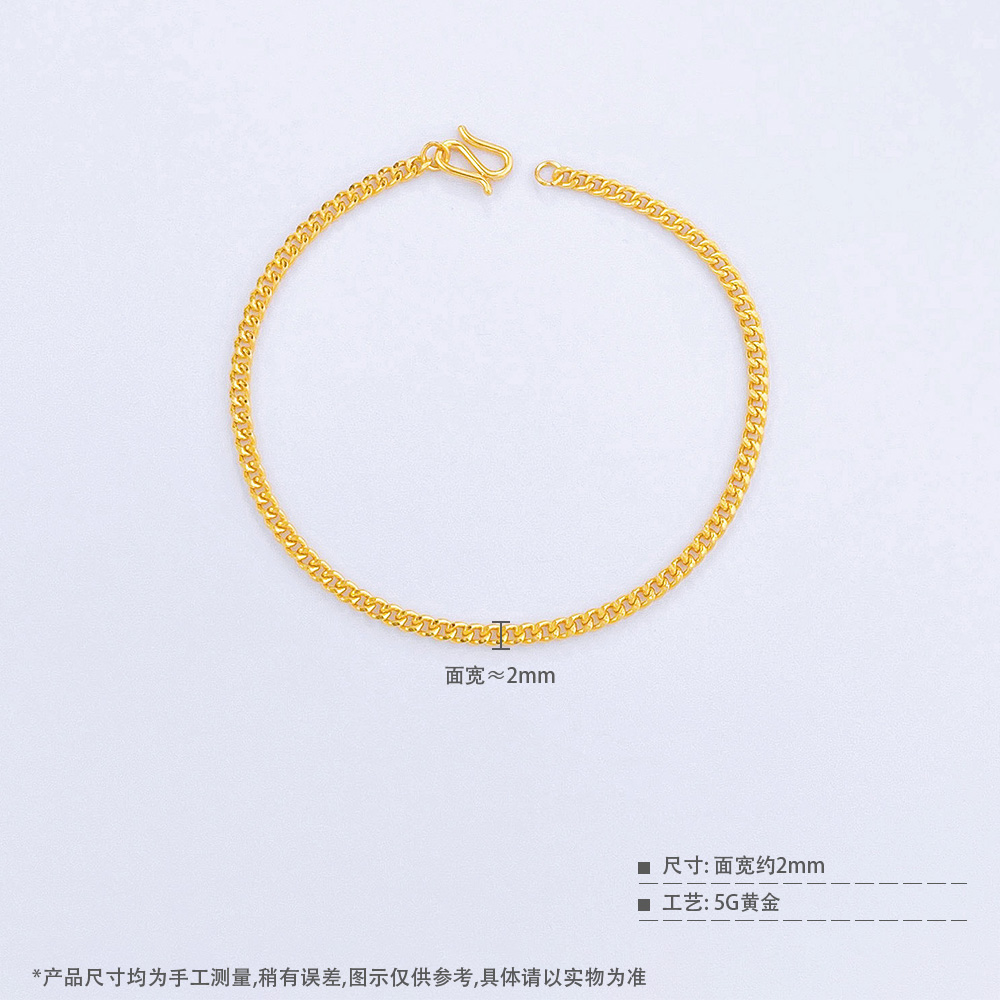 【限时克减150元】足金999 5G黄金不可调节手链老板链侧身链手链女士手链(可以穿绳的古巴链)(AG5GSL00133)(预售产品下单后不退款不退货不换货不补差价)