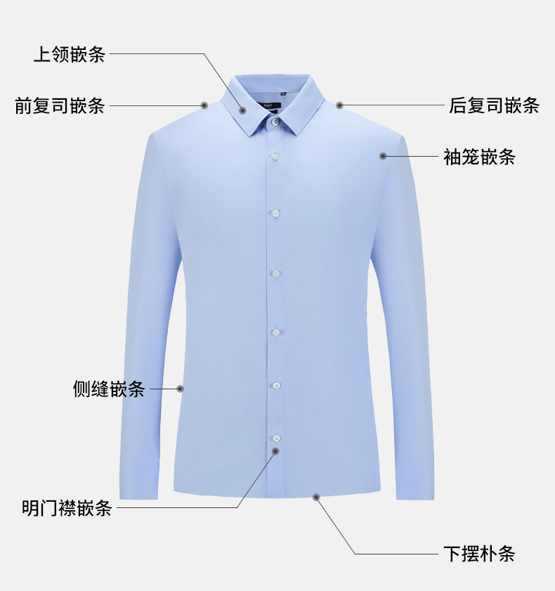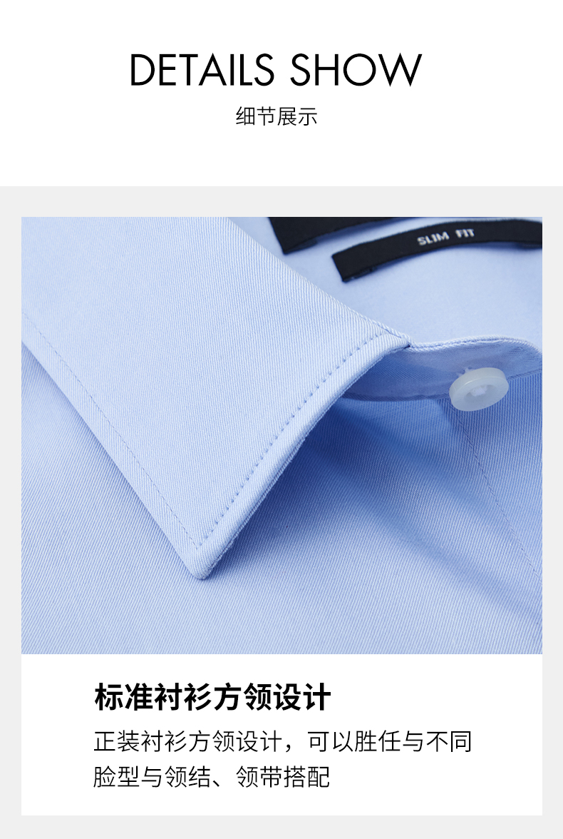 长绒棉蓝色男士DP衬衫商务免烫职业上班名盾夏季修身正装衬衣男