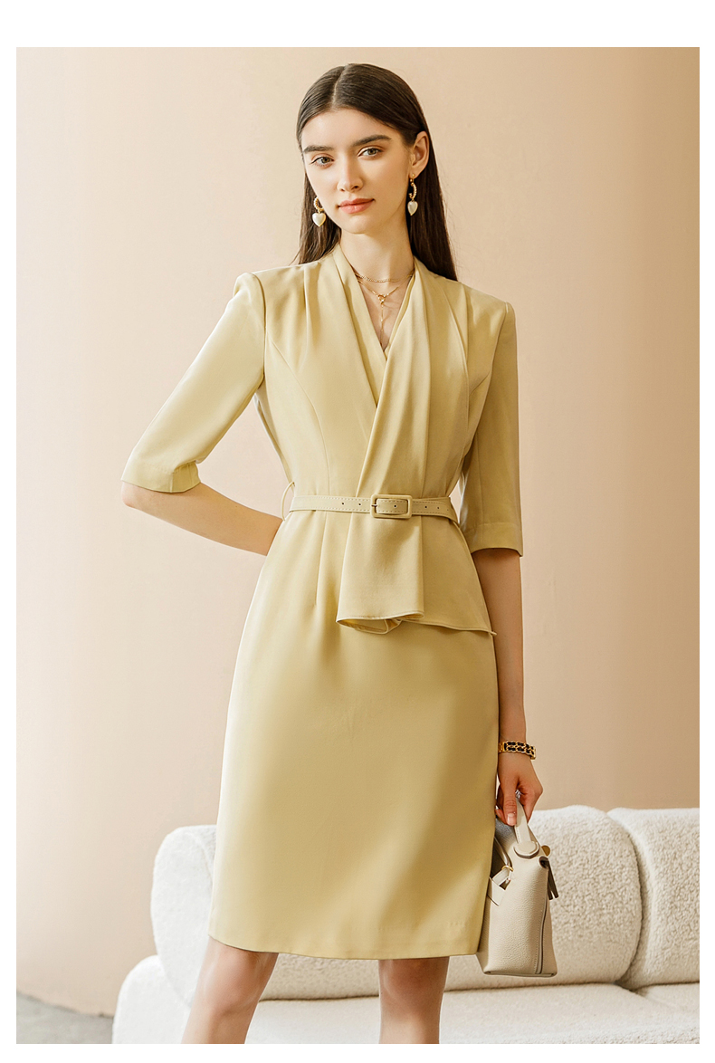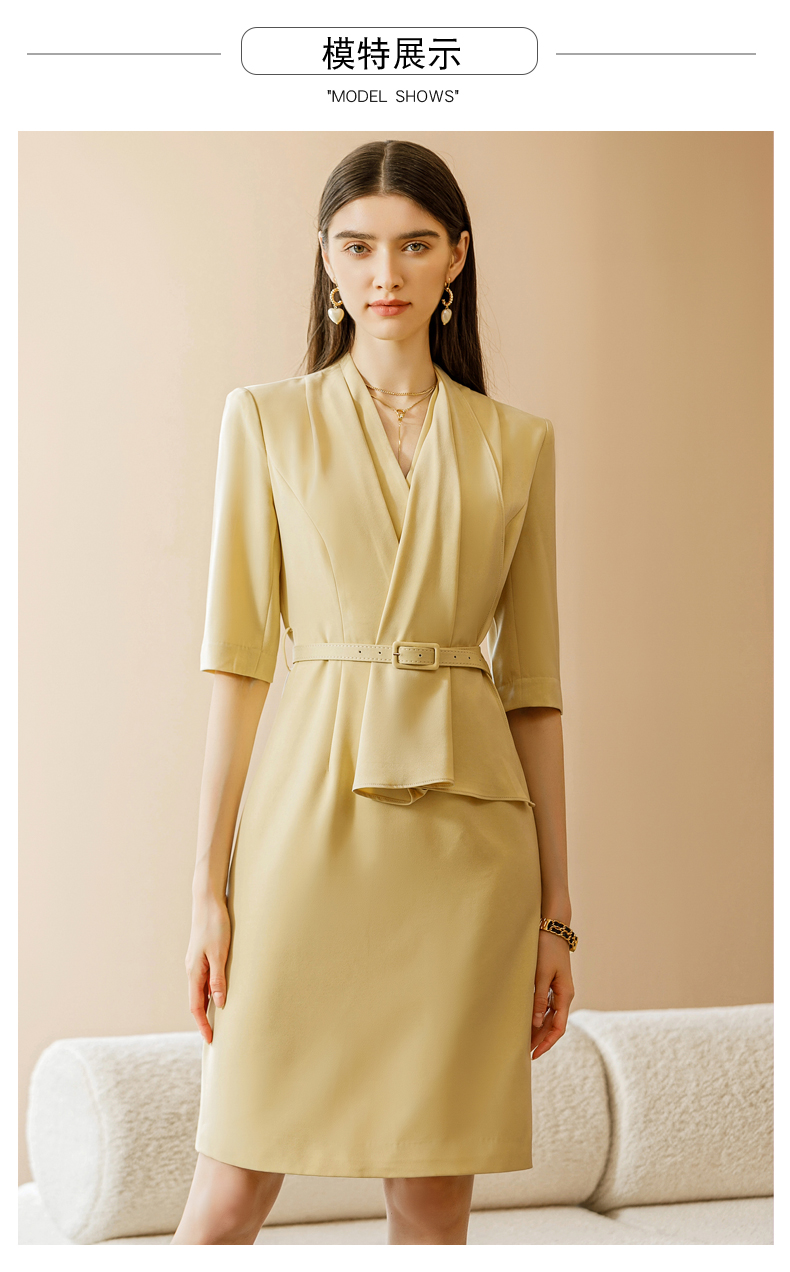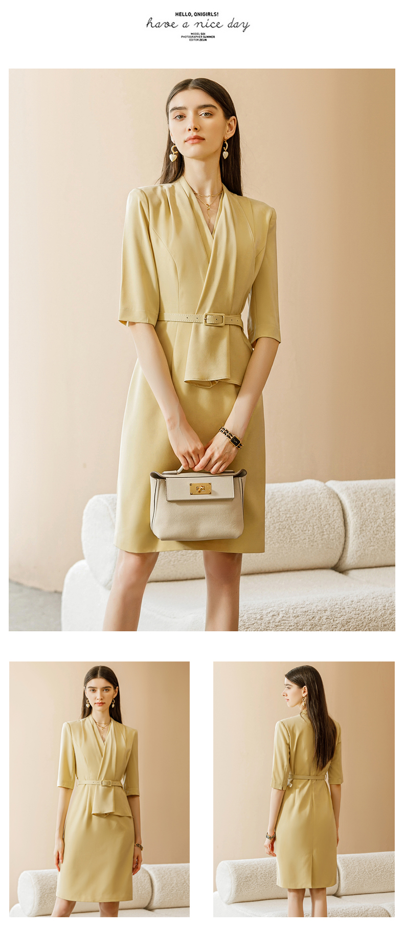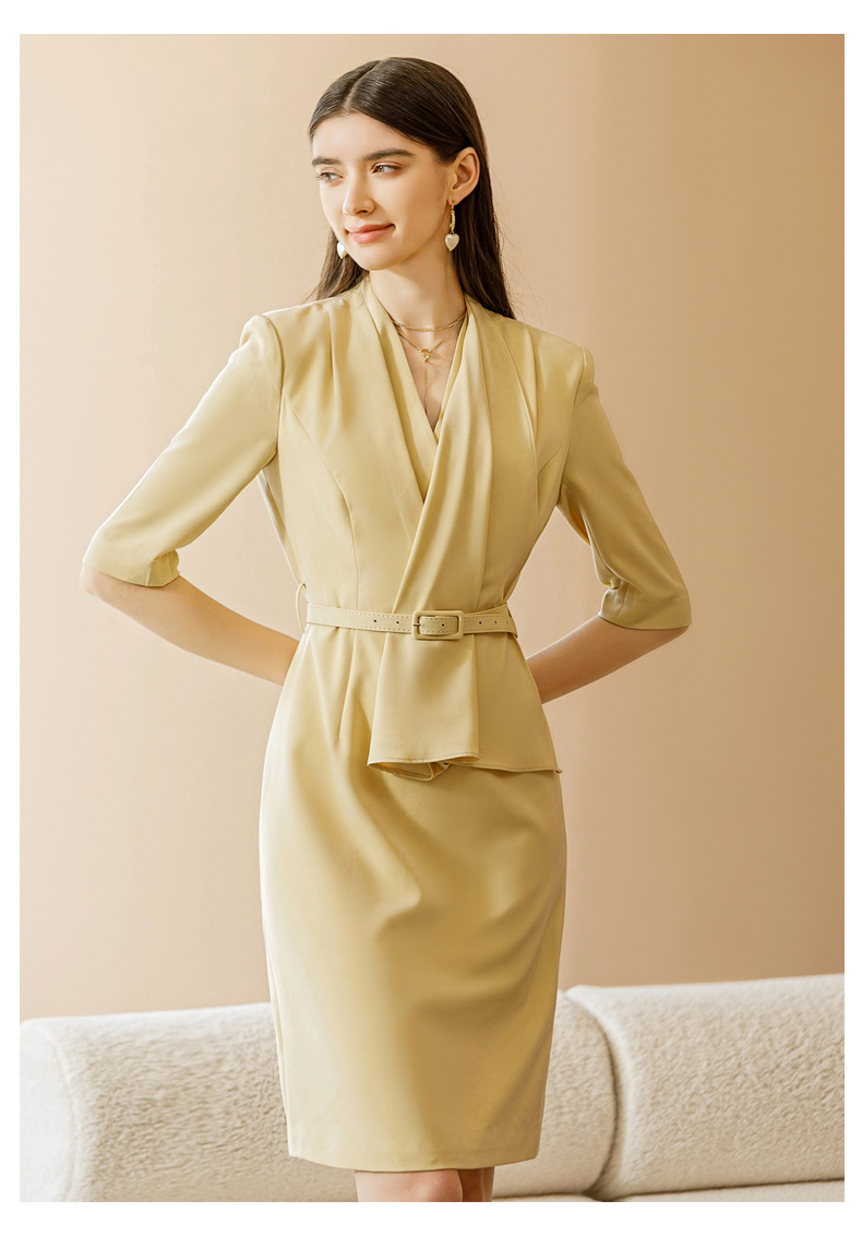 IWY/职业西装套装新款连衣裙杏色夏季五分袖工作服时尚小香风气质22XQ0021