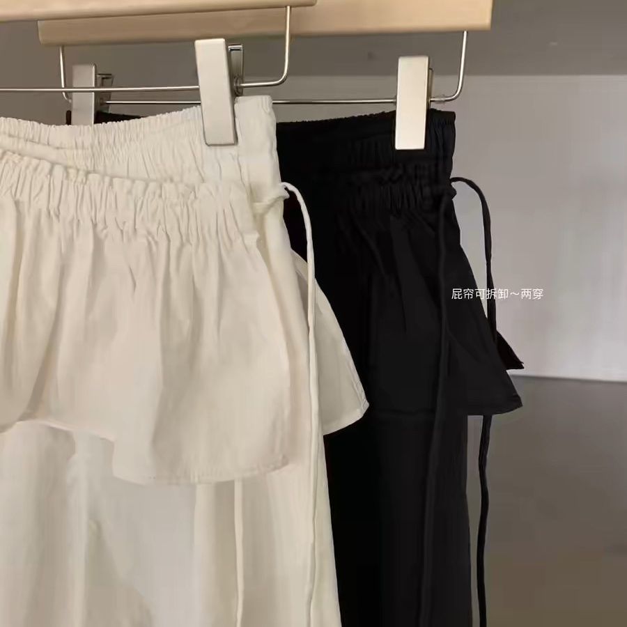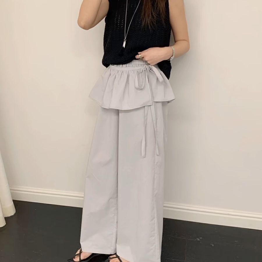 春夏新款【小众芭蕾风裙边休闲裤】松弛感净色松紧腰气质休闲工装裤