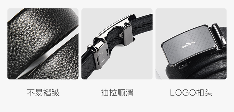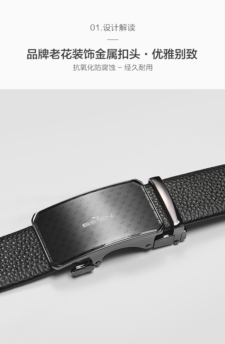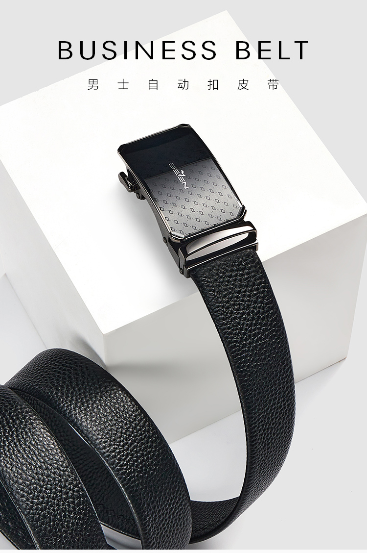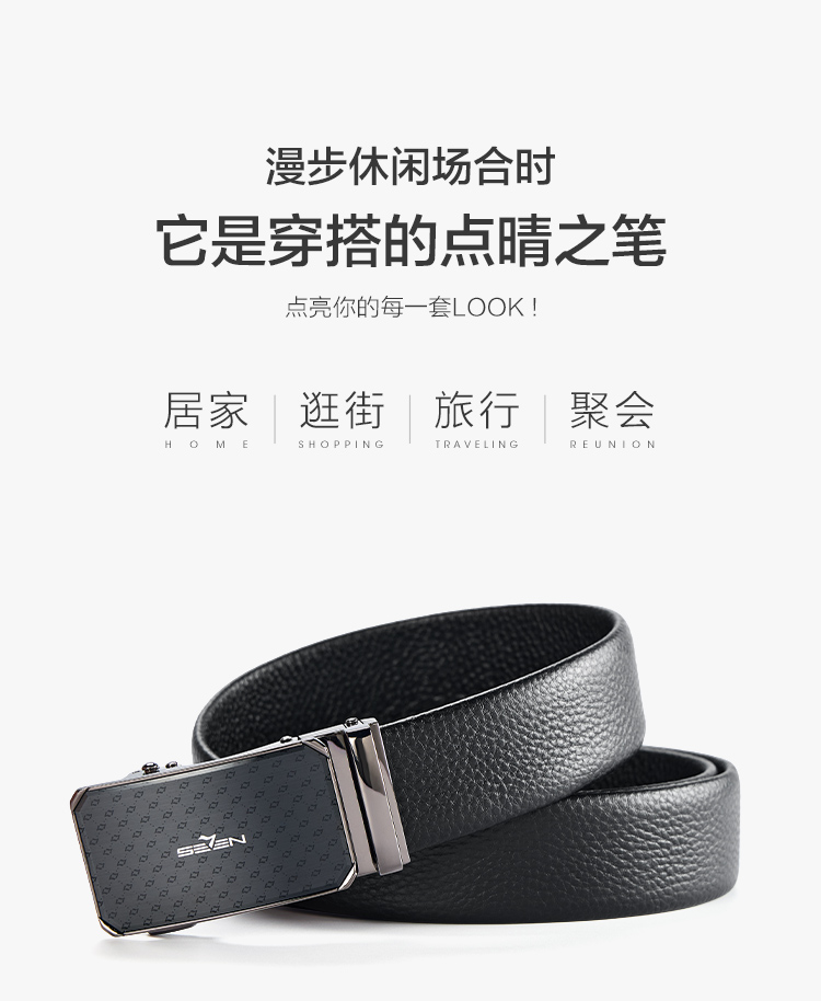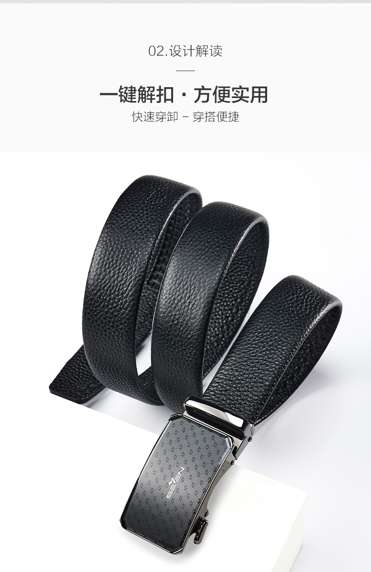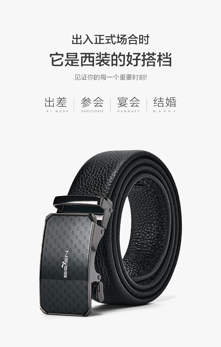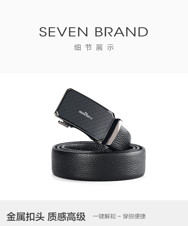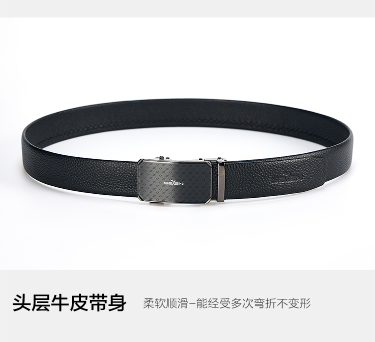 【婚礼季】柒牌男士皮带头层牛皮真皮自动扣时尚商务休闲黑色荔枝纹西装裤带129P70150