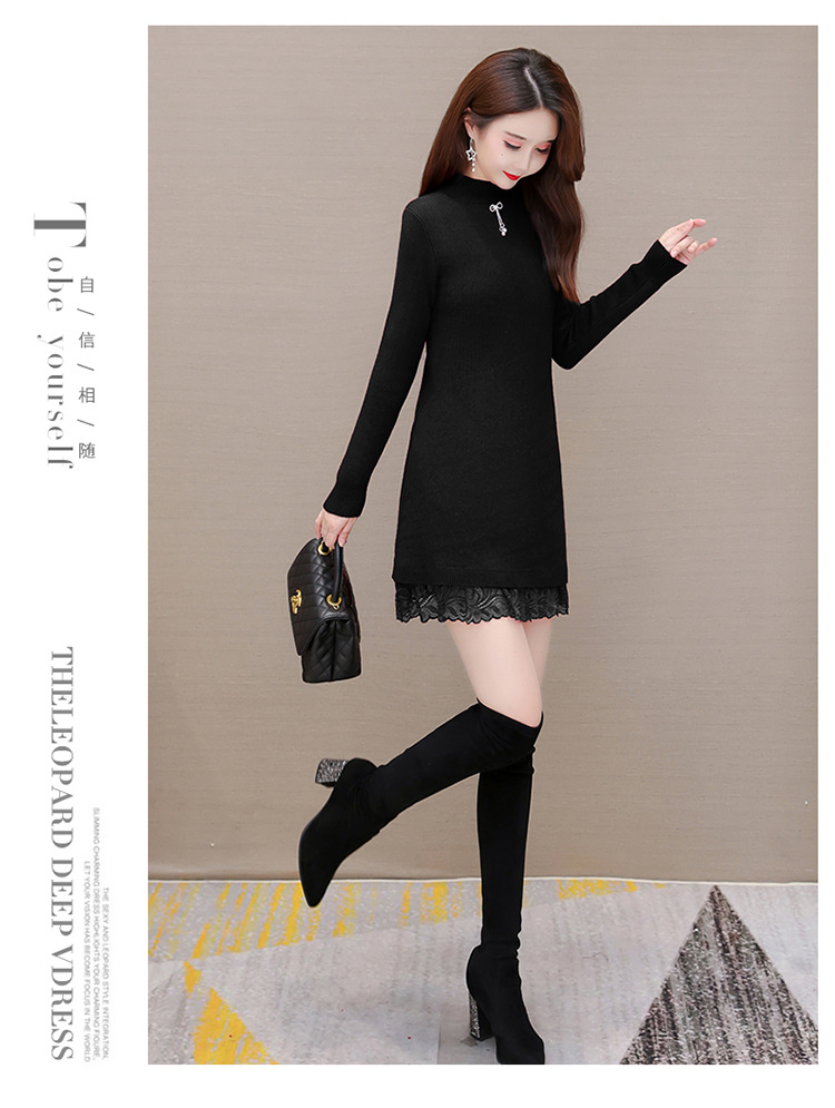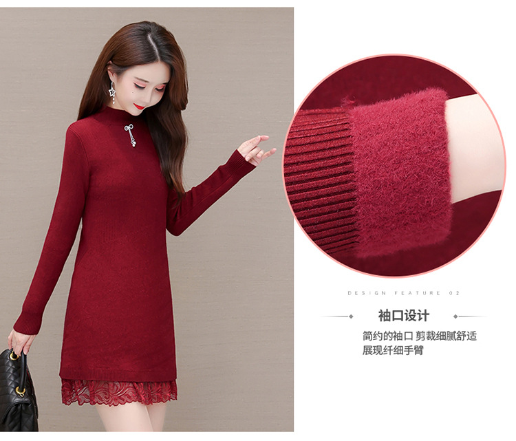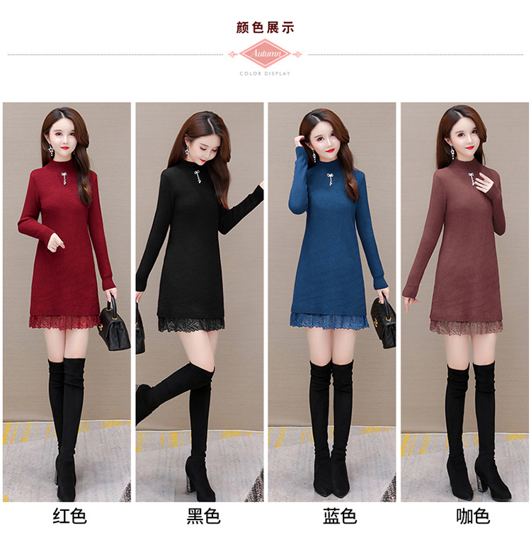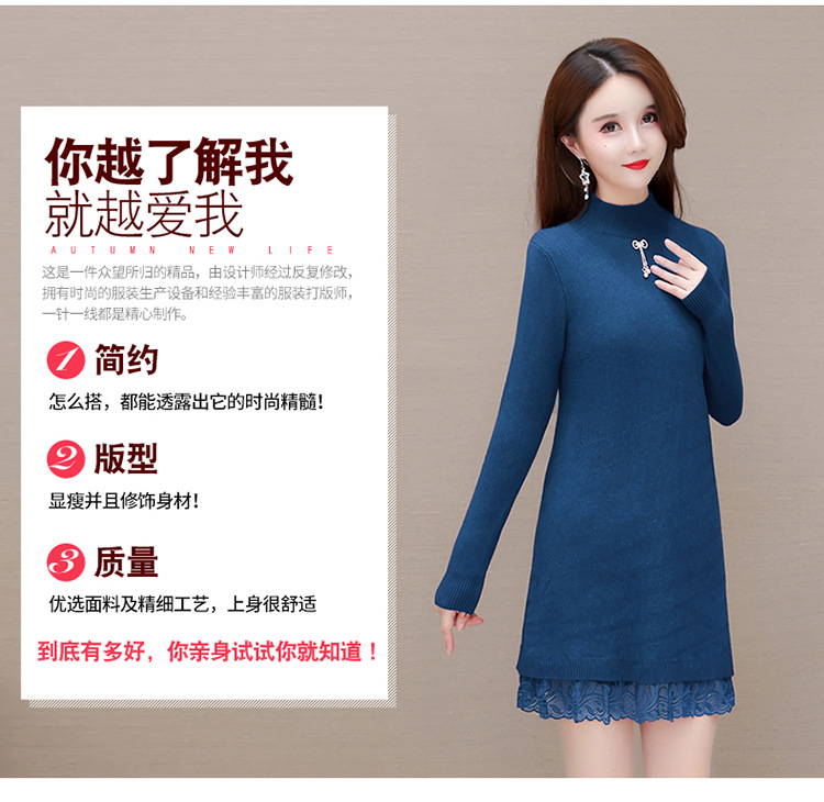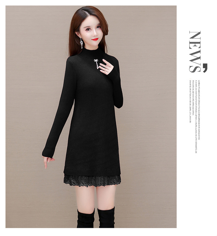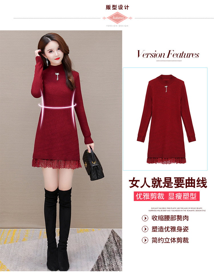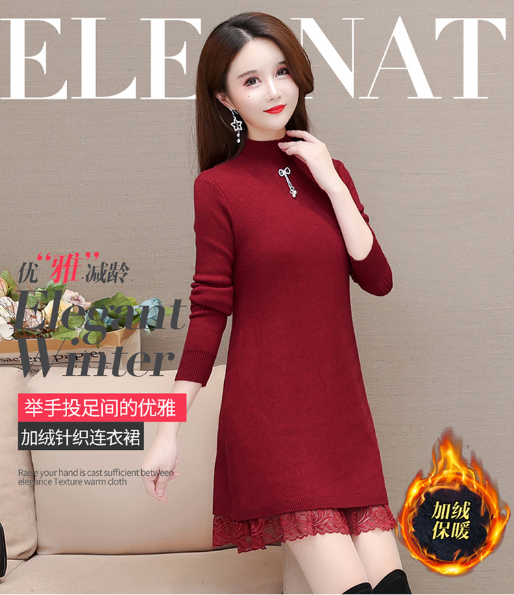 加绒保暖打底裙,时尚拼结蕾丝网纱A字裙QYM-YM-22B9121-Y