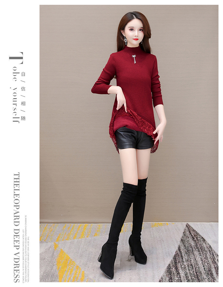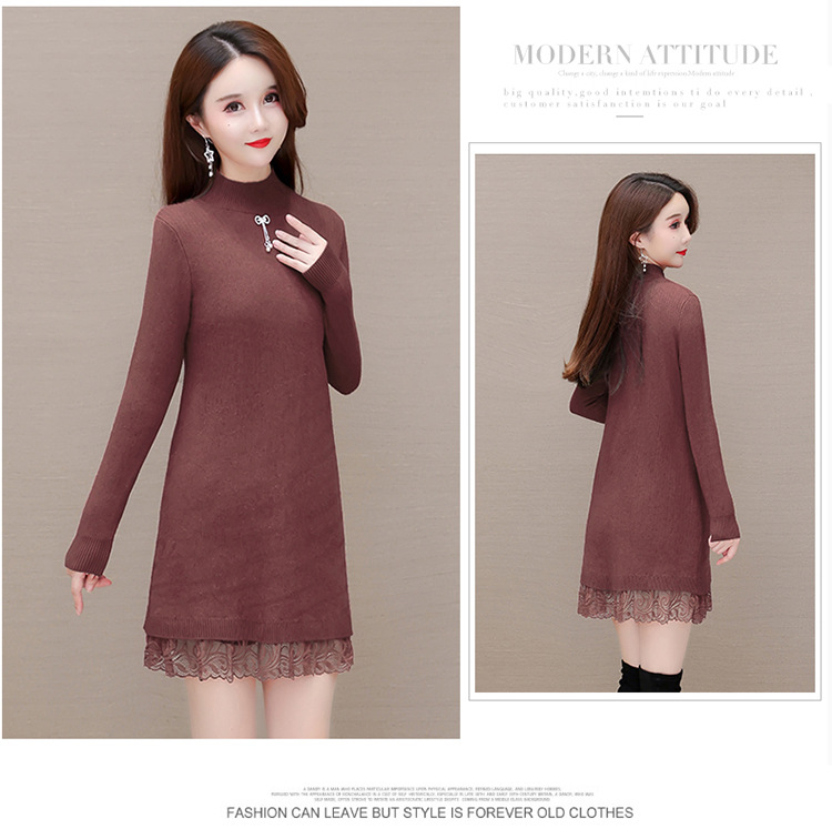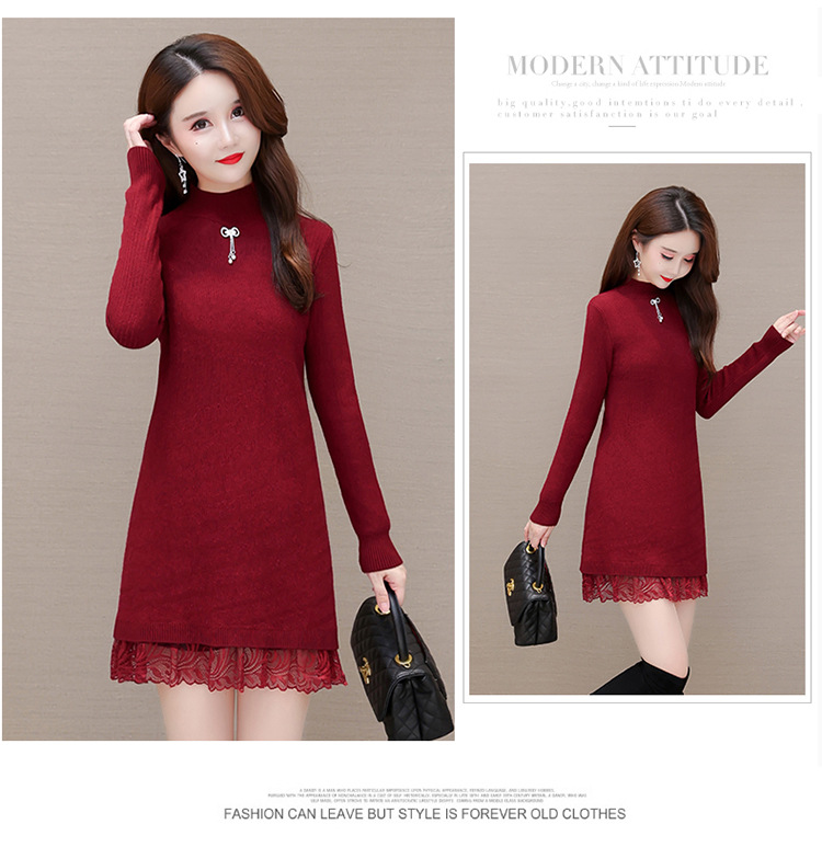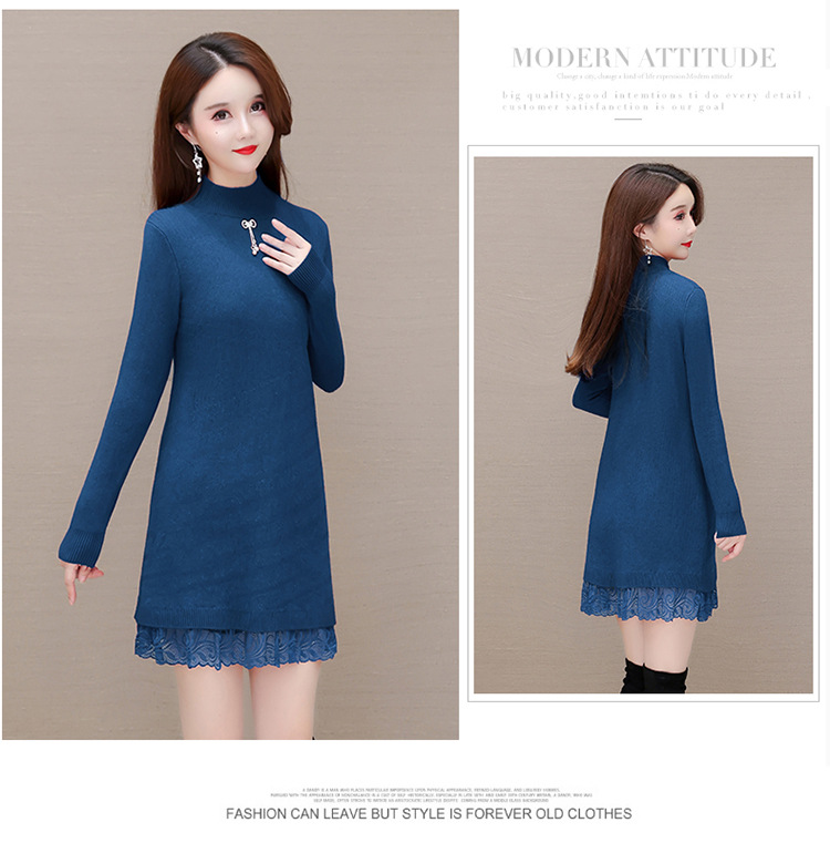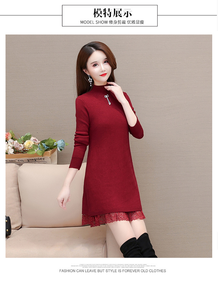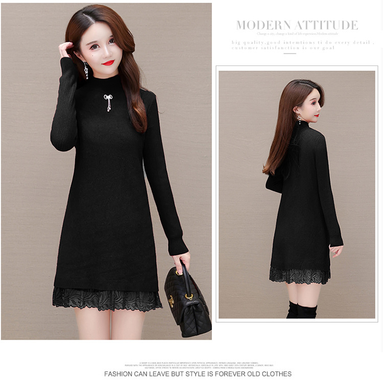 加绒保暖打底裙,时尚拼结蕾丝网纱A字裙QYM-YM-22B9121-Y
