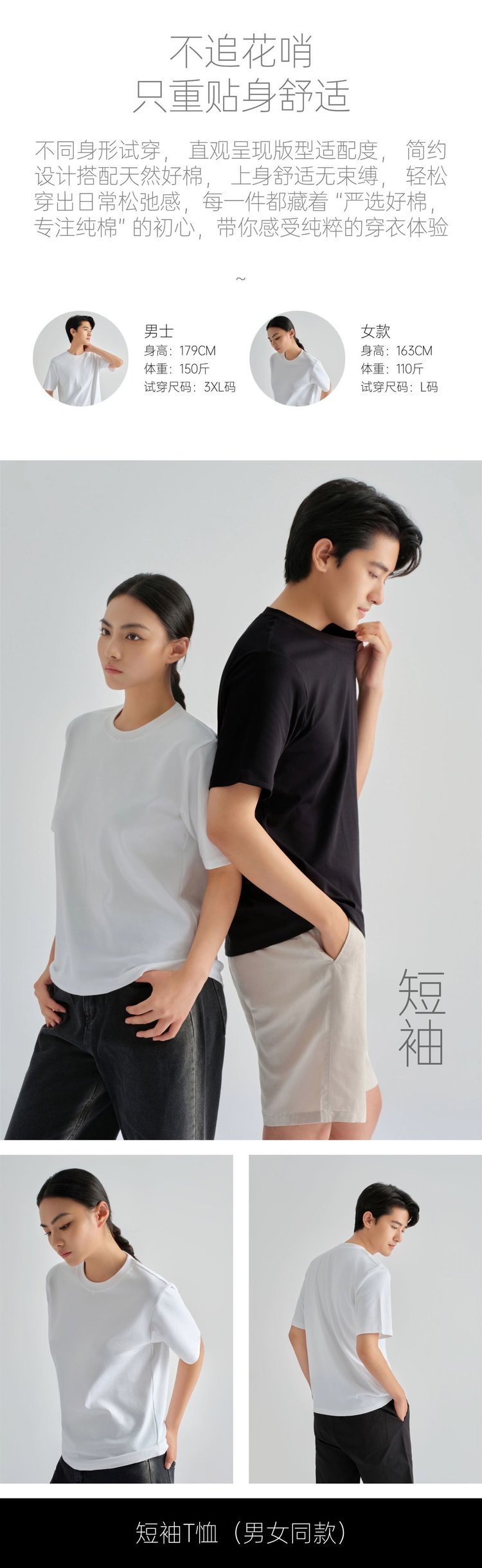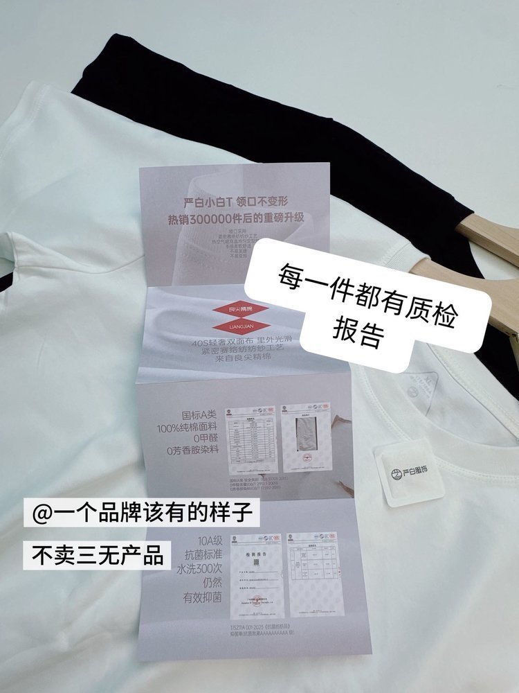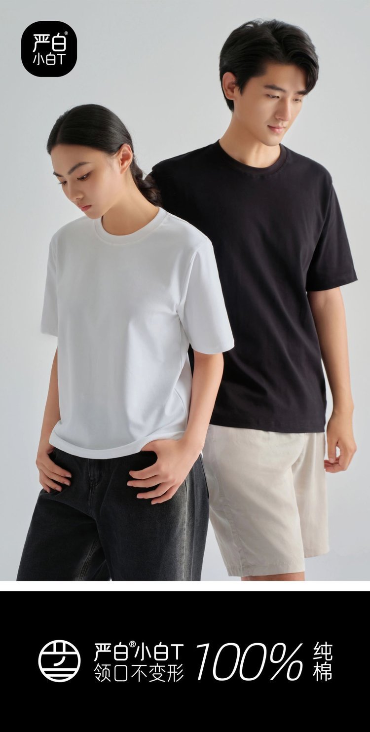 【热销30万件】严白小白T男女同款经典短袖(领口不变形 纯棉A类面料 10A级抗菌 卡码拍大一码)
