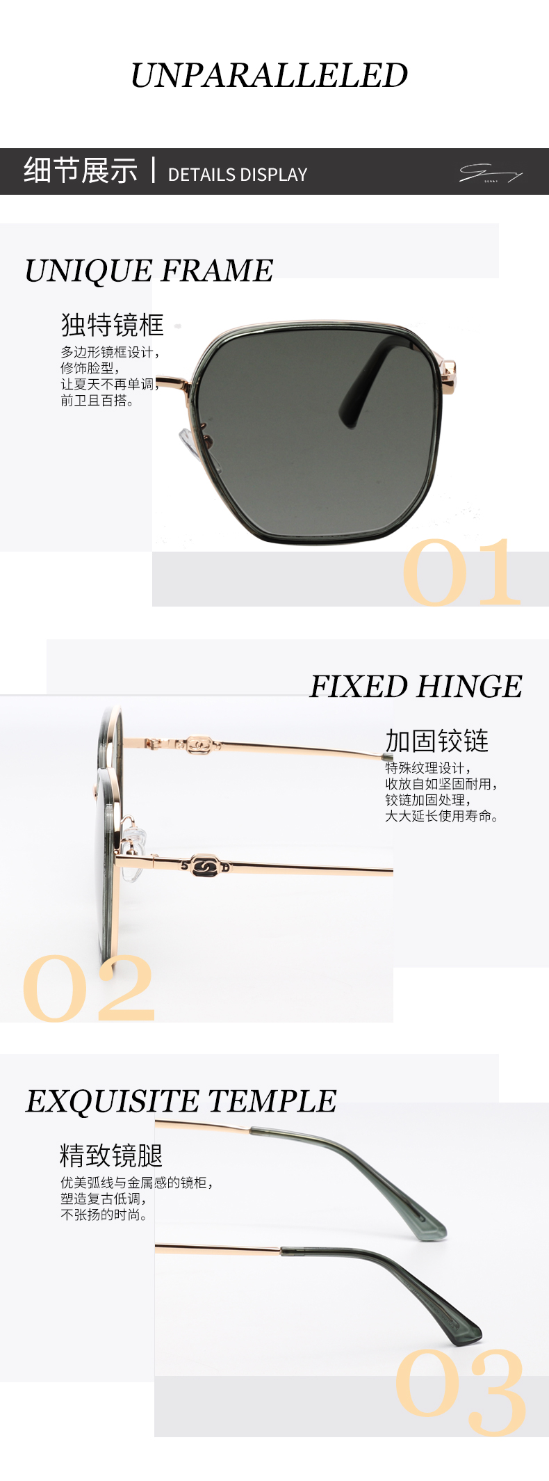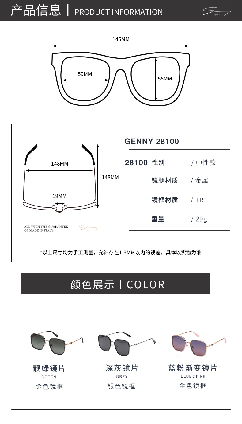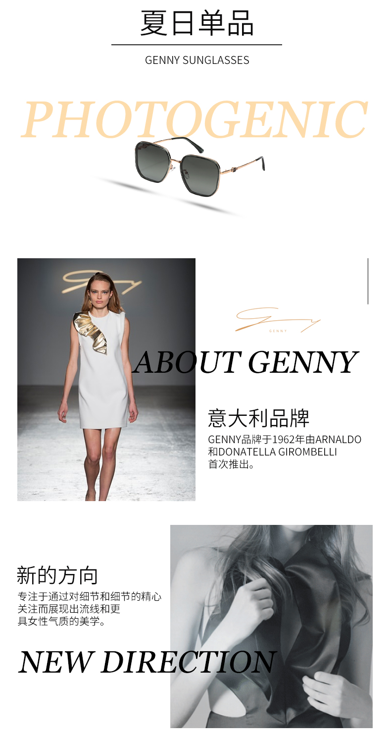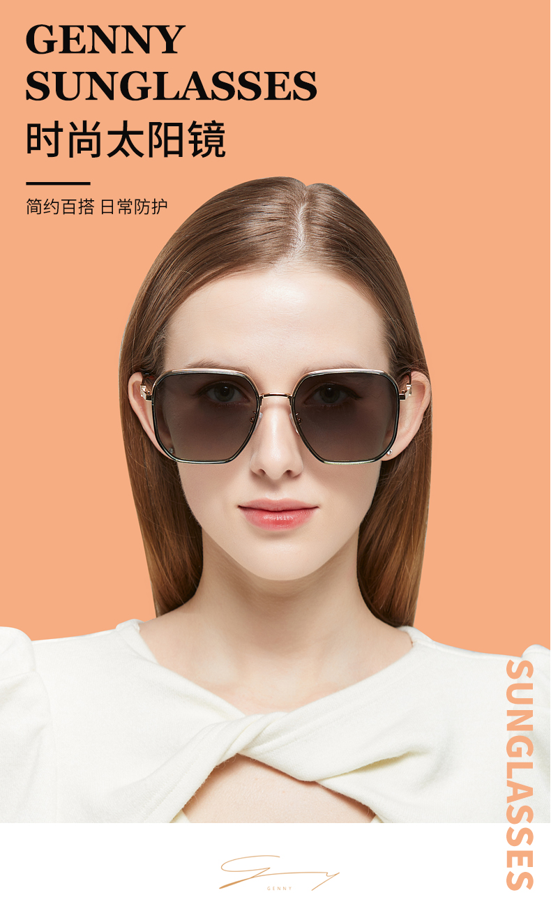 GENNY金属方框太阳镜 买即送男士偏光眼镜