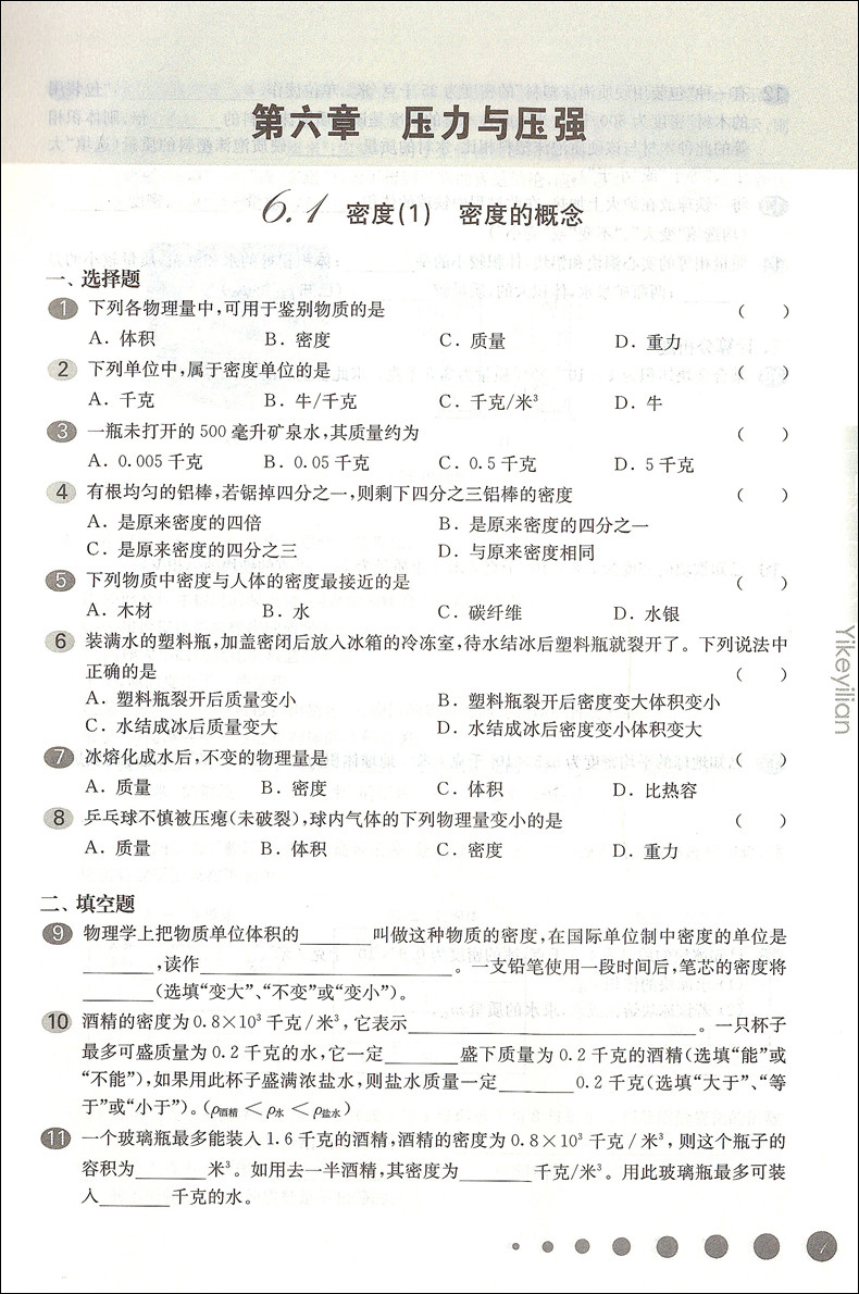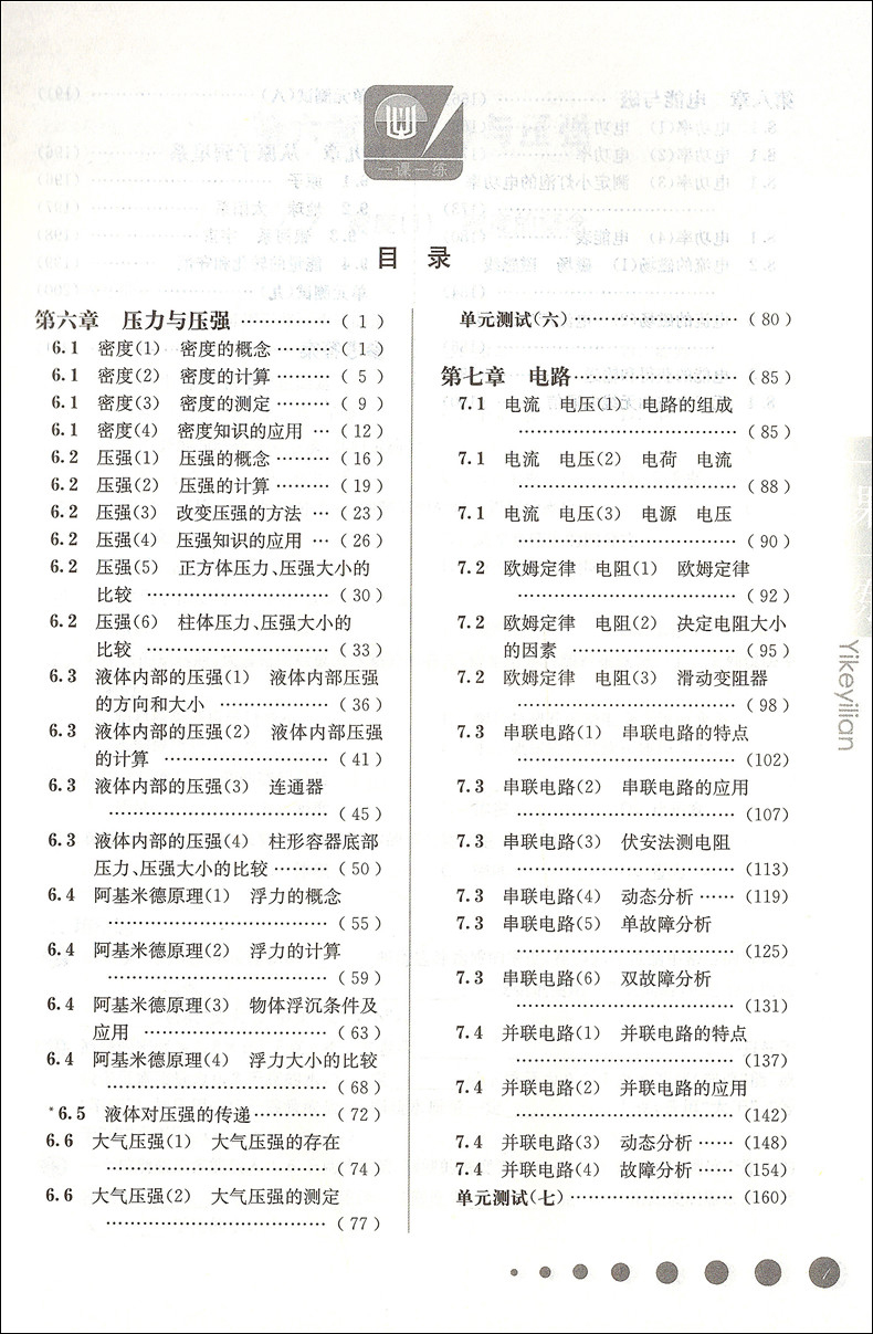 2021年一课一练九年级物理华东师大版语文数学英语化学增强版9年级上册下册全一册上海沪教版初三练习册