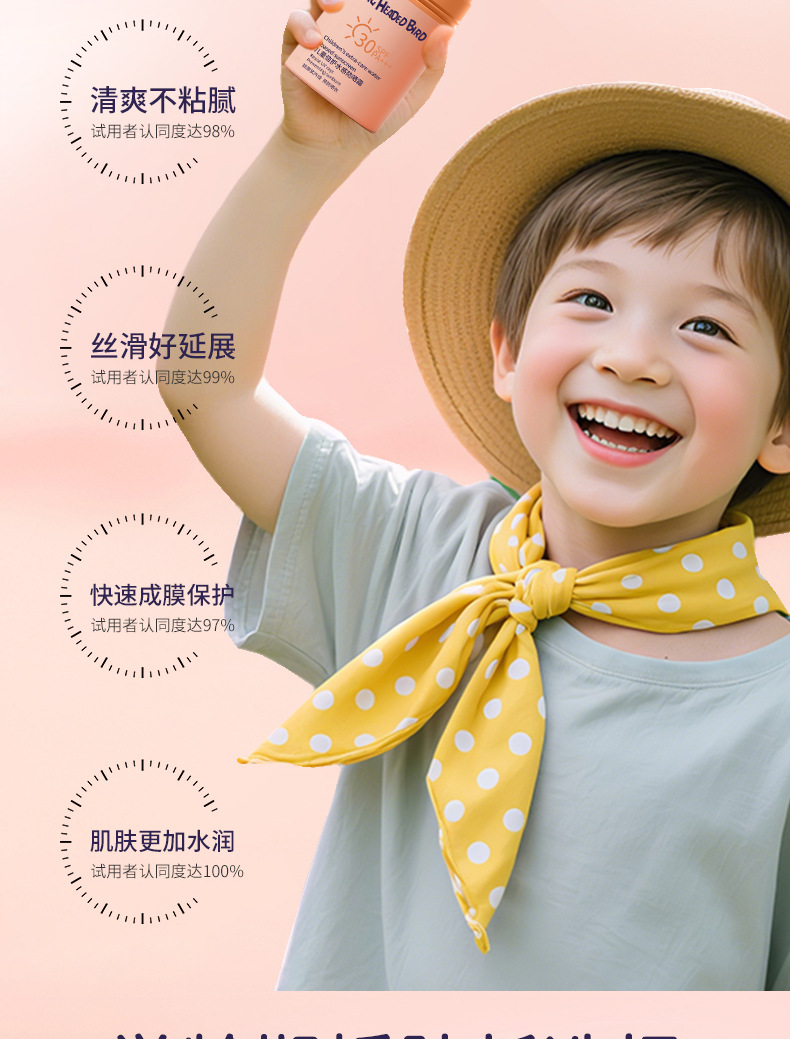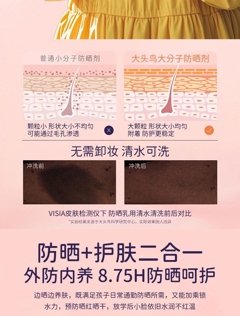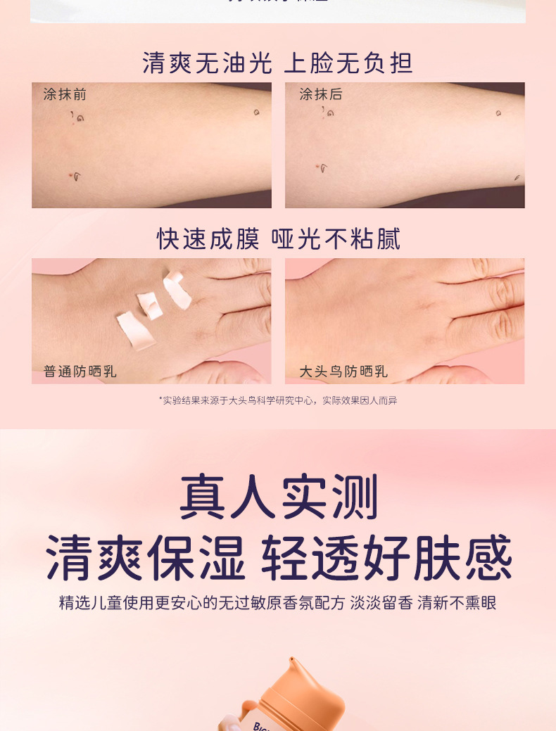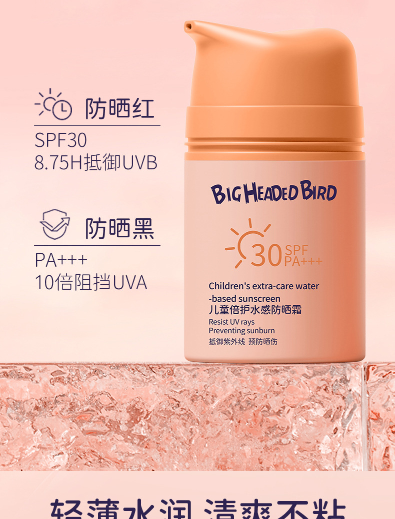【清爽不粘!轻薄水润】大头鸟儿童防晒霜隔离防紫外线30倍宝宝物理防晒乳 温和户外清爽。xb