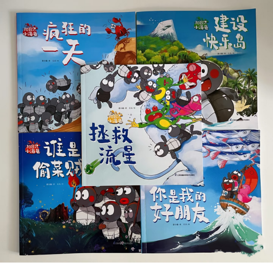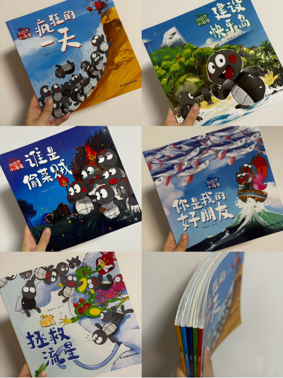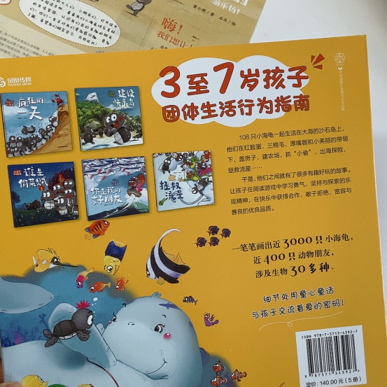 📚整套书共五册,包括:《疯狂的一天》、《建设快乐岛》、《谁是偷菜贼》、《你是我的好朋友》还有《拯救流星》。 书里有三根毛、厚嘴唇,小美丽以及其他100多只小海龟,他们勇敢无畏,齐心面对困难,互帮互助,分工建设家园,身体力行,分享爱与宽容,善良友善,珍惜每一位朋友..