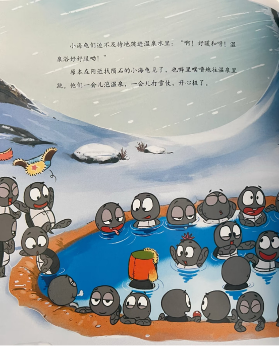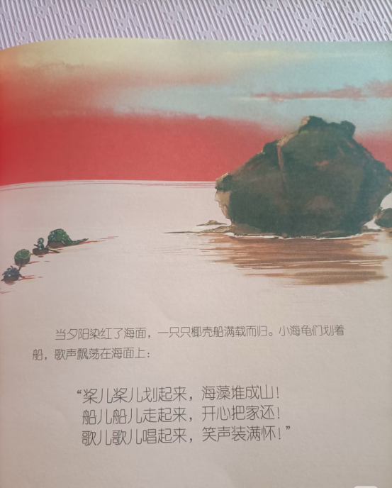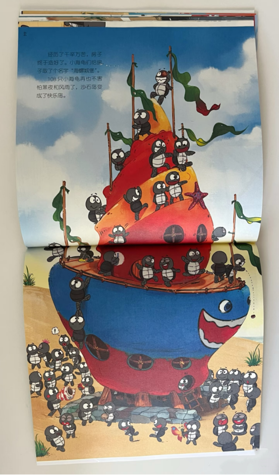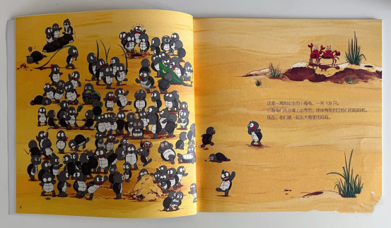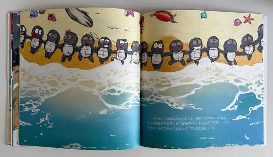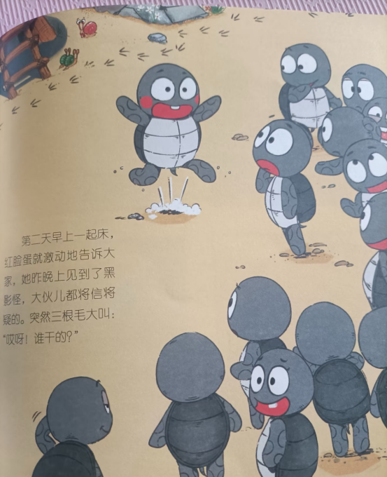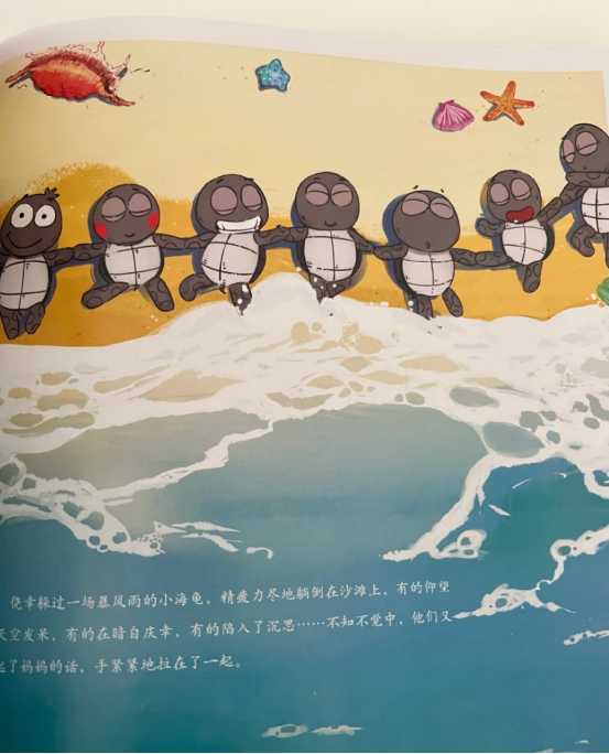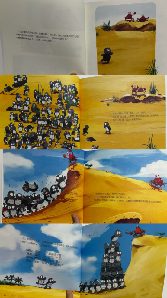 绘者画工很不错,在开始表现小海龟们精神不振的时候,每一只小海龟的面部表情,眼神都各不相同,让我们看到很丰富的画面!在它们召集小海角几个的时候,我认真地数了一下,真的有108只小海龟哦! 书中通过有趣的故事,让孩子潜移默化当中学习良好的品质,助力孩子更好地成长!