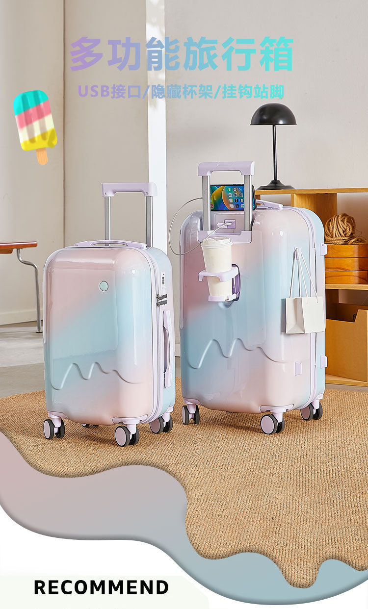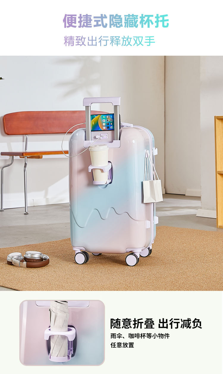 【多功能旅行箱】渐变款行李箱爆火女高颜值24寸旅行拉杆箱20寸登机箱密码箱。ry