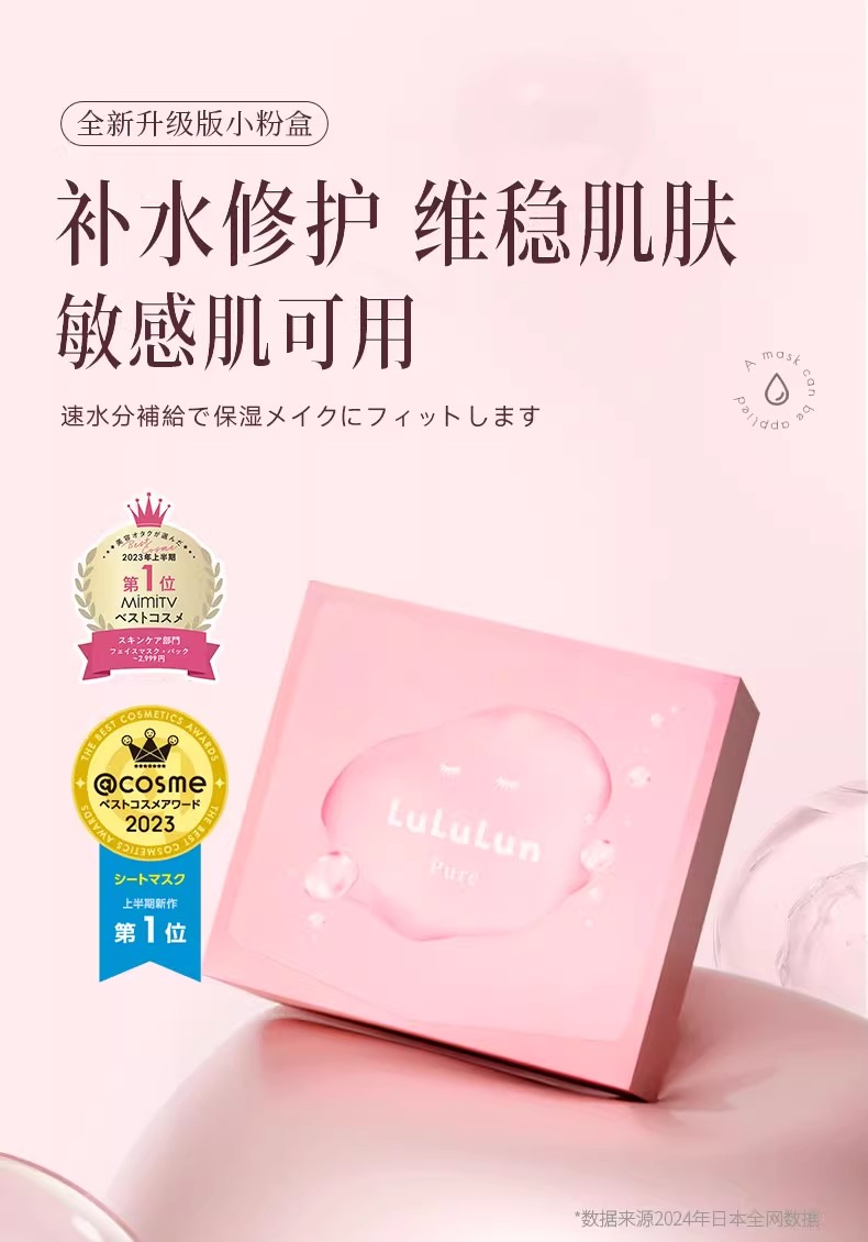 LuLuLun小粉盒补水面膜修护肌肤深层驻颜高保湿面膜抗老化日本面膜深层补水滋润32片/盒