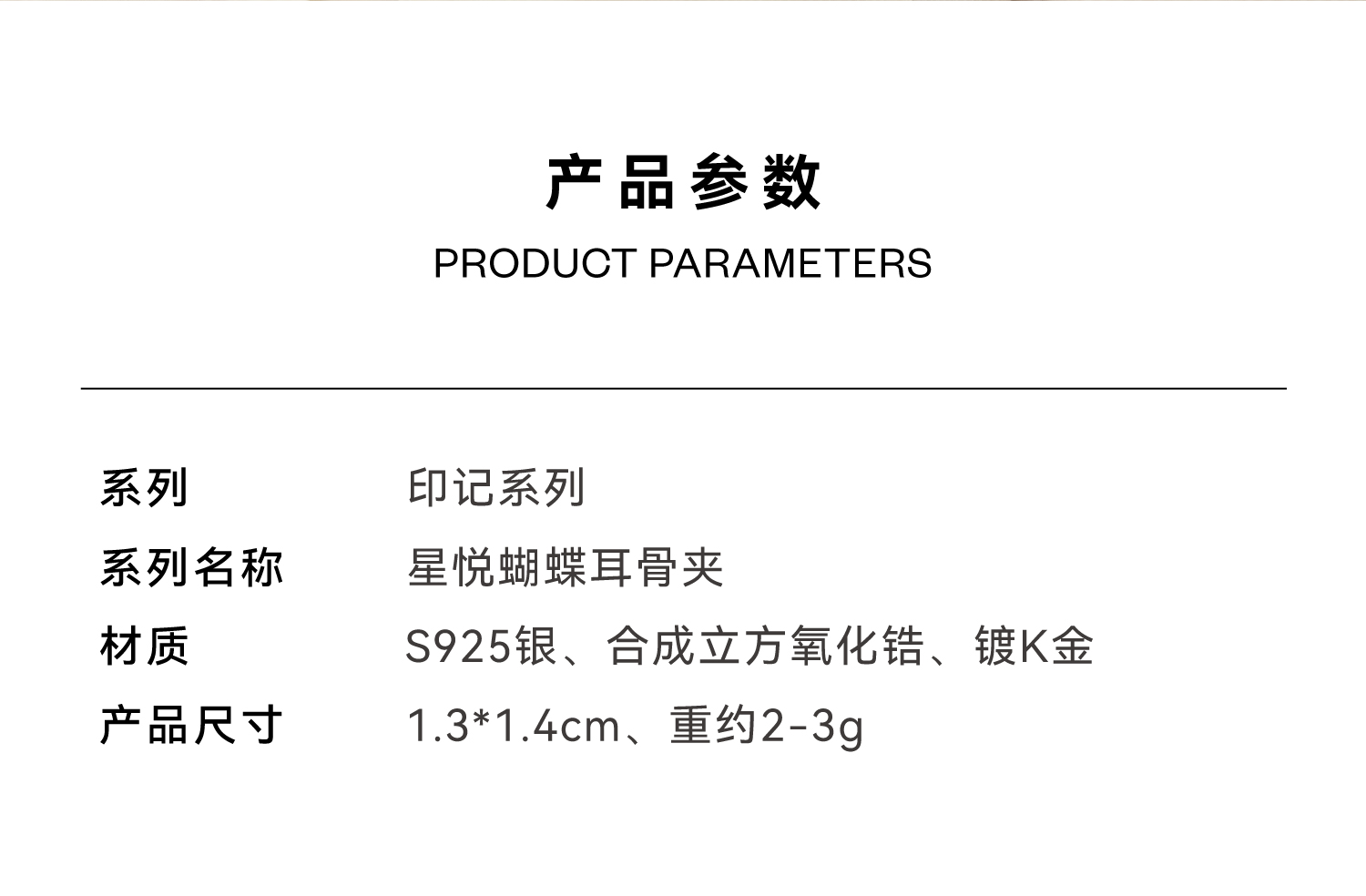 ARSIS银饰|幸运符号系列 星悦蝴蝶耳骨夹