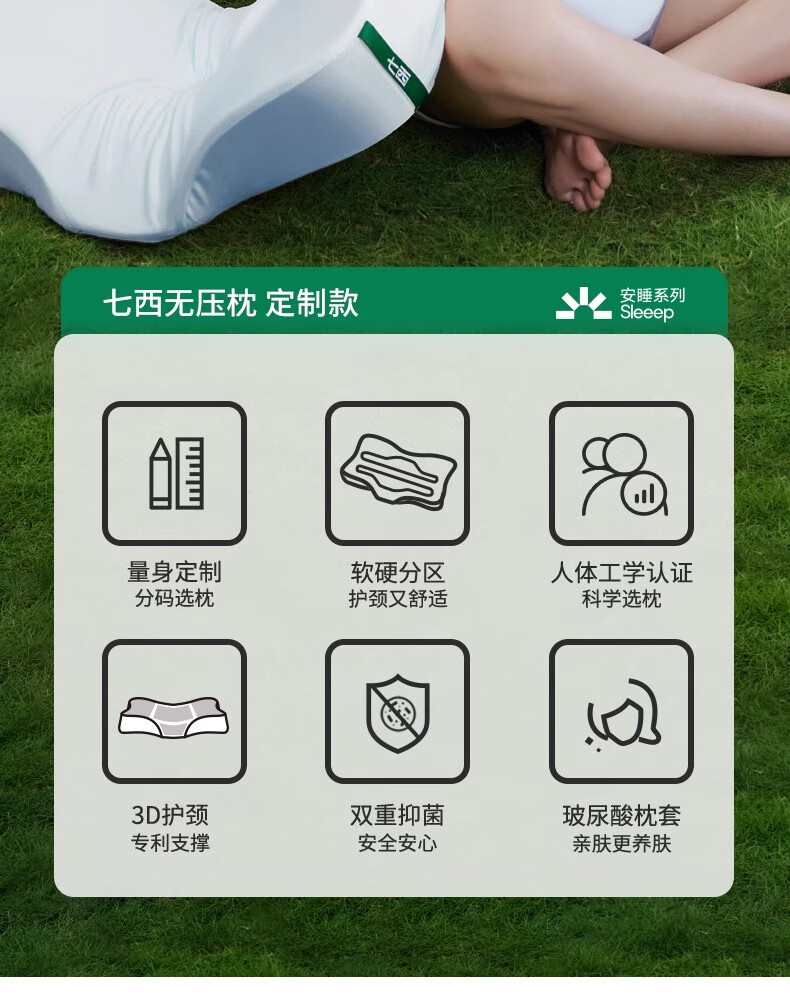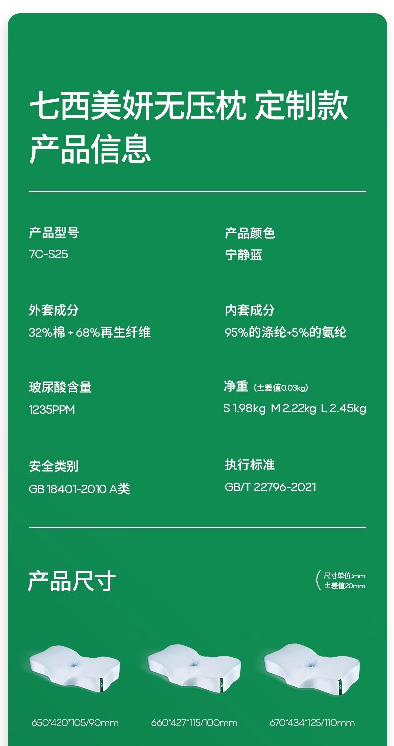七西7C枕头美妍枕睡眠颈椎枕头慢回弹无压枕芯 支撑枕面加大升级款 美妍无压枕3.0