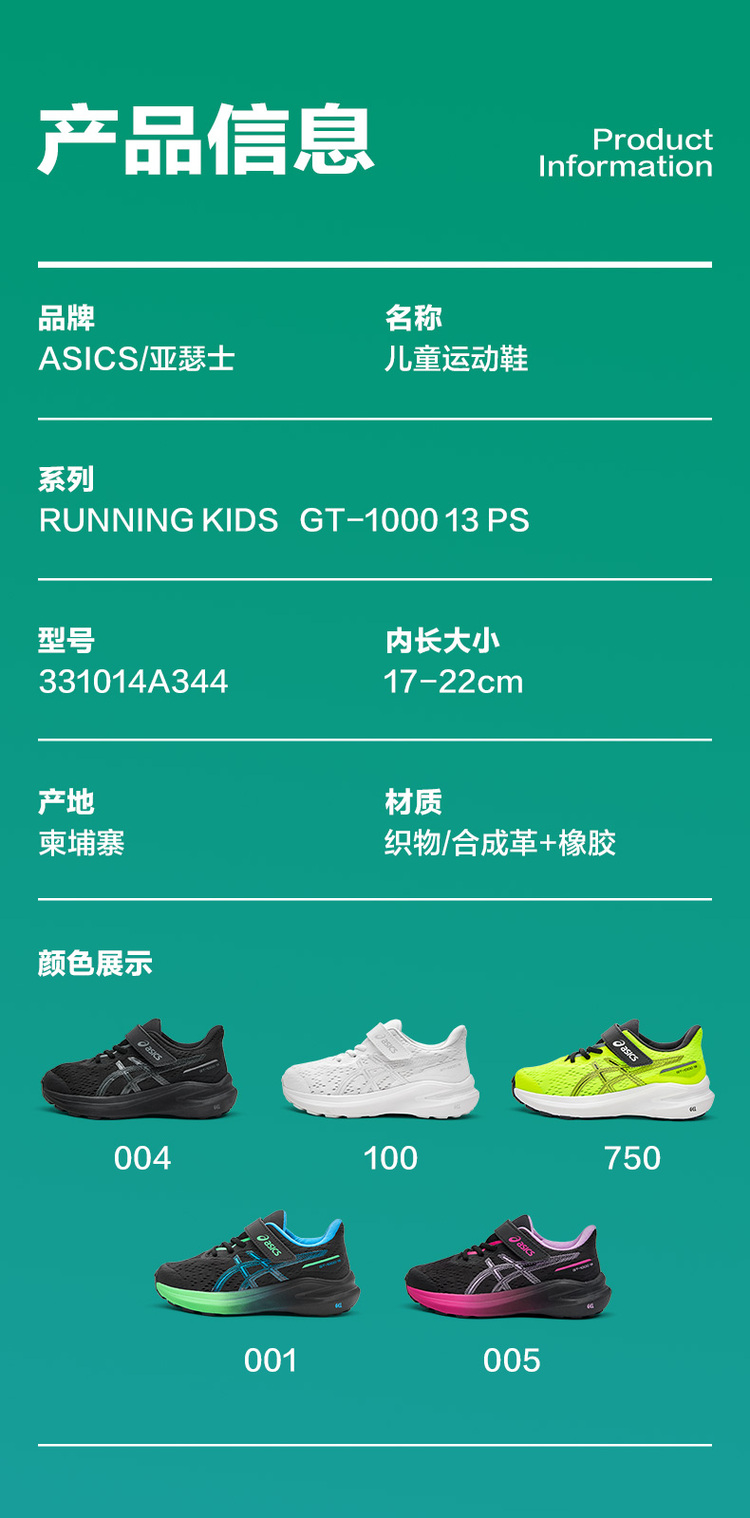 ASICS/亚瑟士童鞋24新款运动鞋男女童跑步鞋网眼透气缓震GT-1000