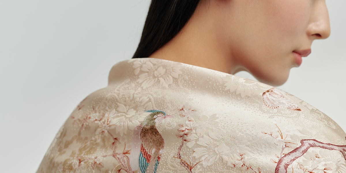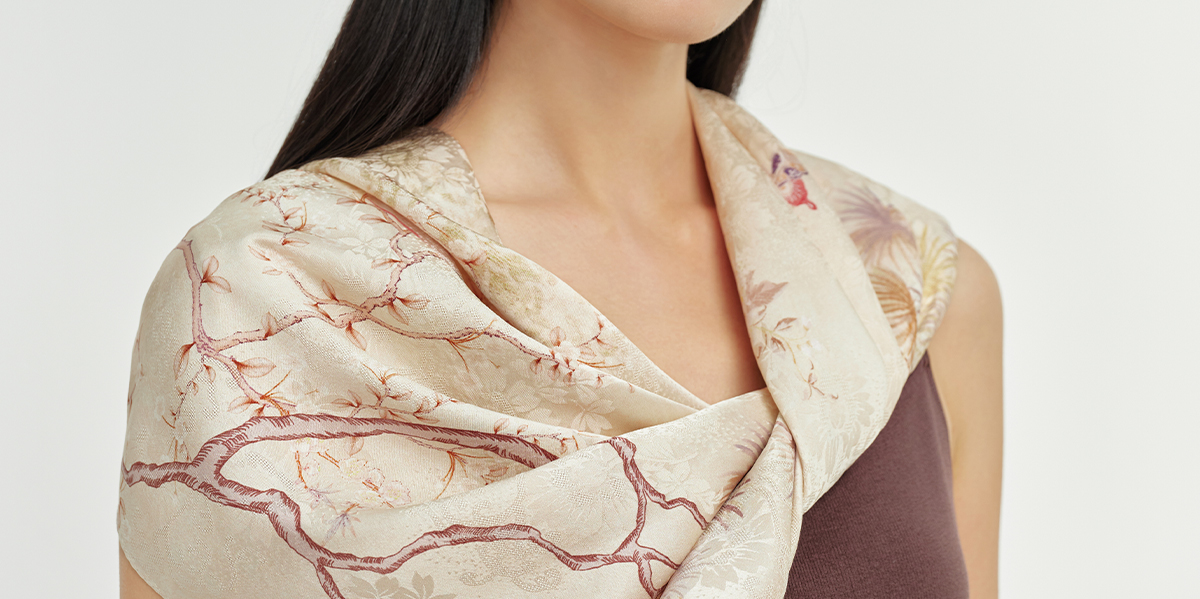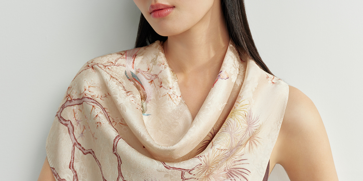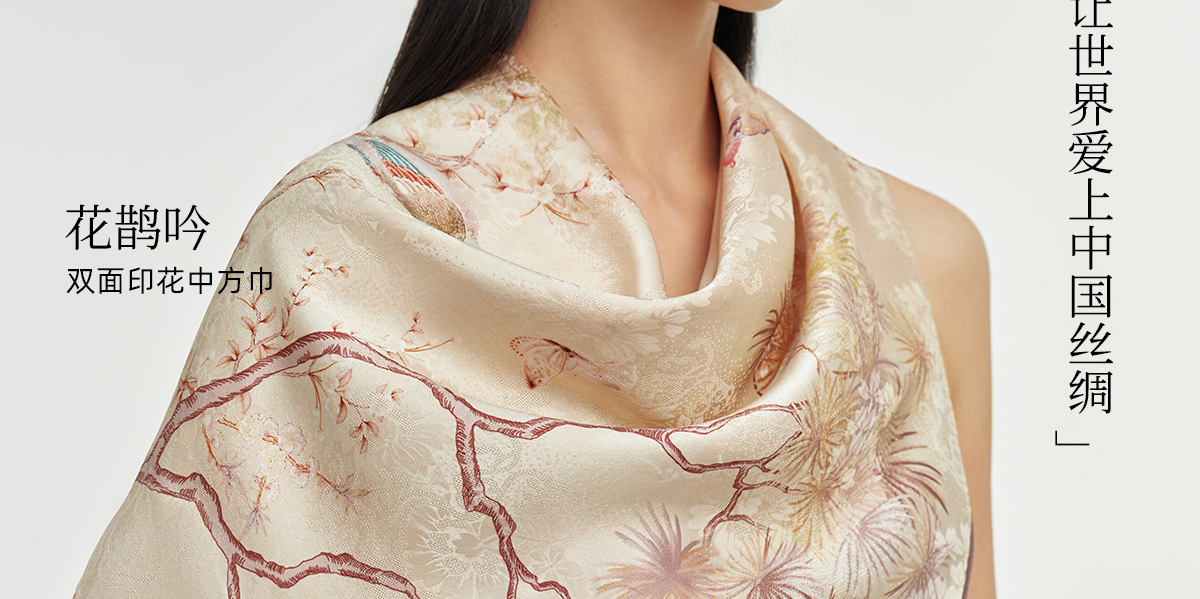 万事利“繁花颂歌”75厘米双面印花中方巾