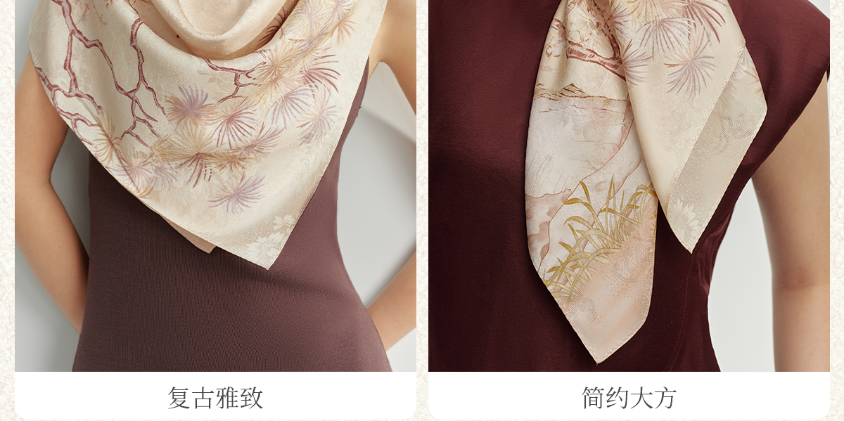 凤凰之家“昭霞序”63厘米双面印花真丝中方巾