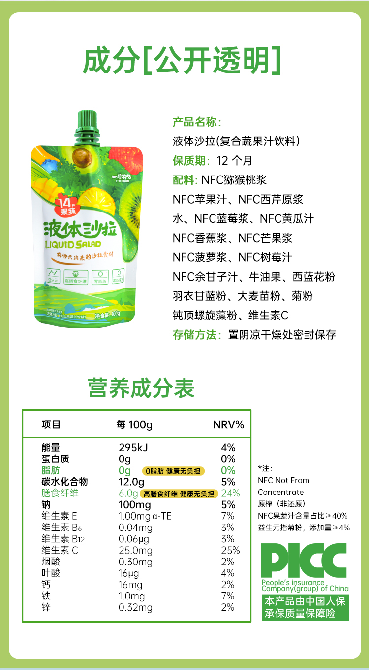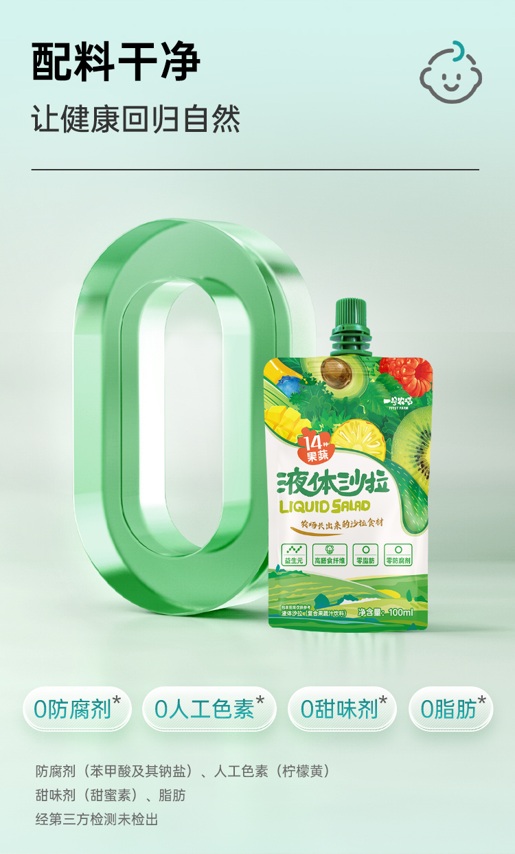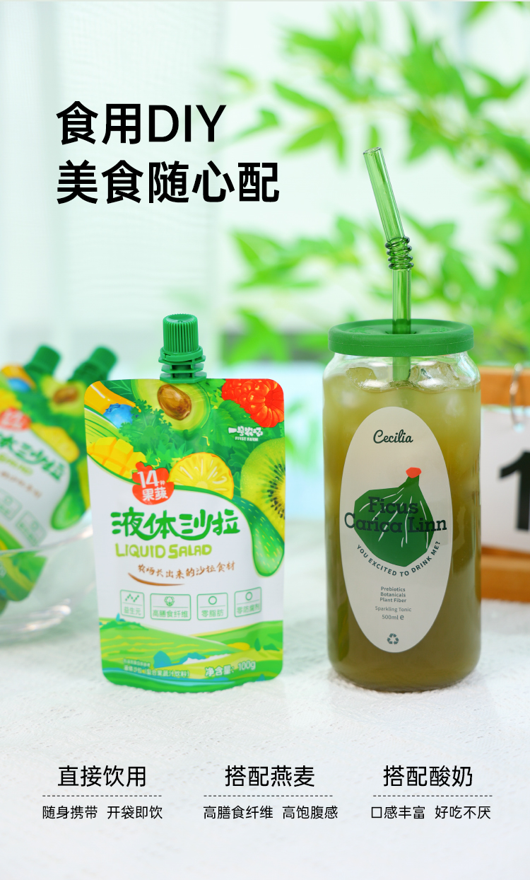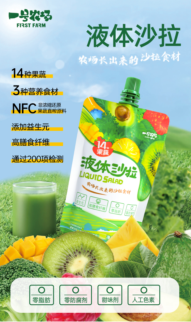 一号农场液体沙拉0脂轻液断代餐主食果蔬菜汁羽衣甘蓝膳食纤维