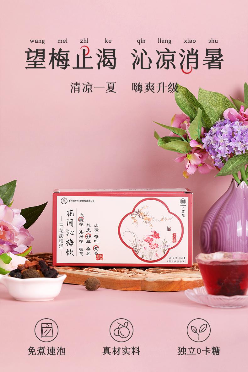 【买2送1 买3送3】李时珍—李氏纲目 花间沁梅饮(三花酸梅汤)消夏冰饮 沁人心脾