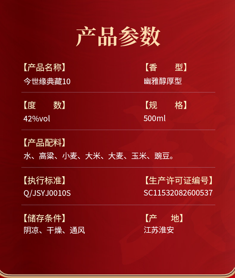 【酒厂直营】今世缘浓香型白酒典藏 D10 整箱 42度500ml*6瓶