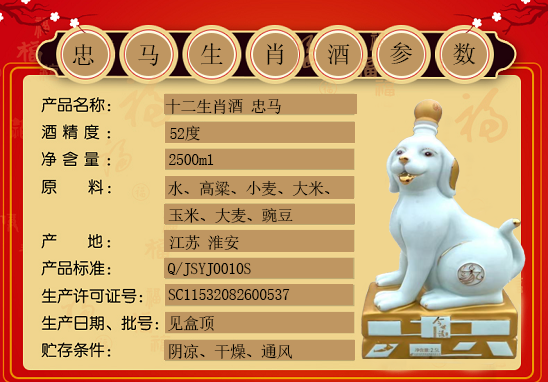 52度2.5L今世缘十二生肖忠狗珍藏纪念酒