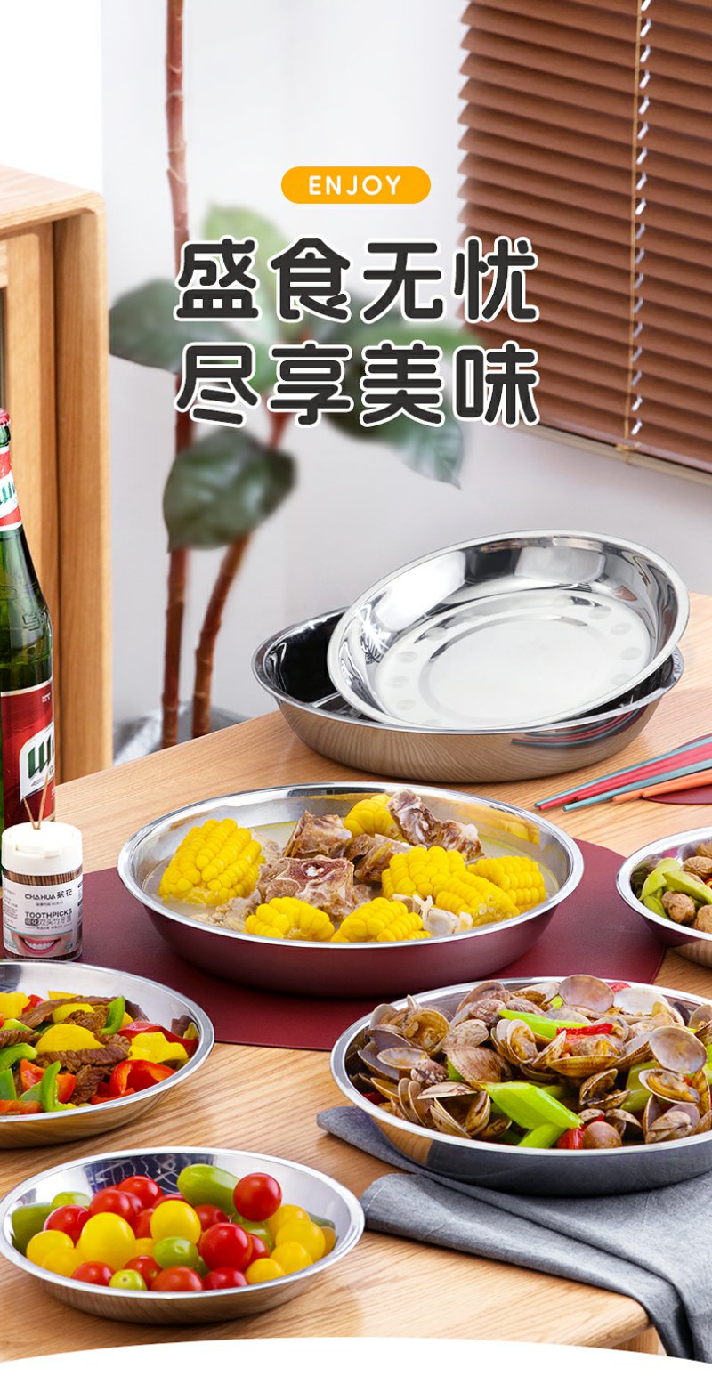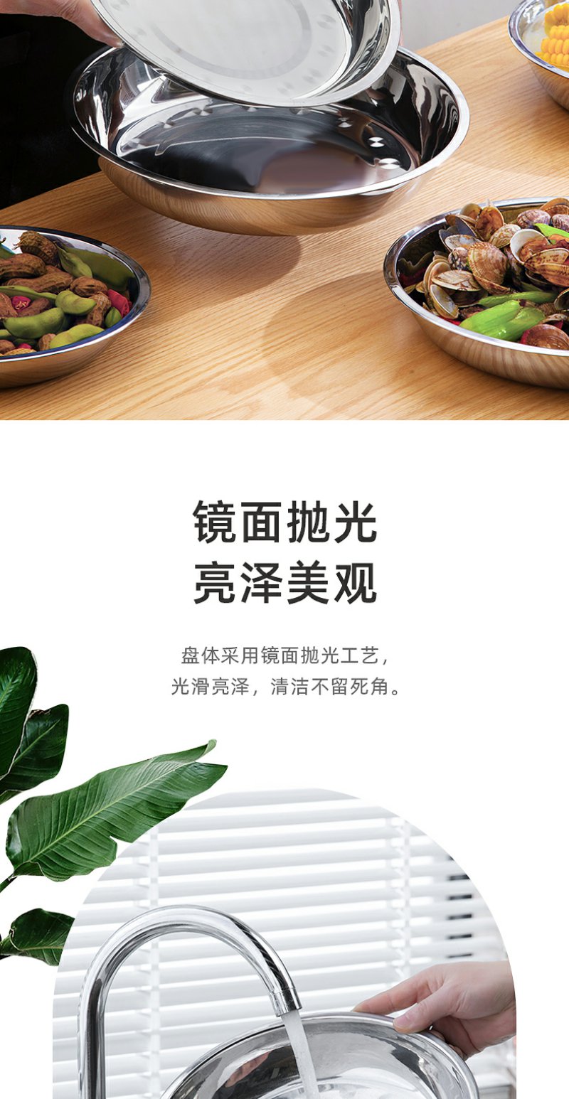 【茶花】不锈钢大圆盘备菜水果盛菜盘子