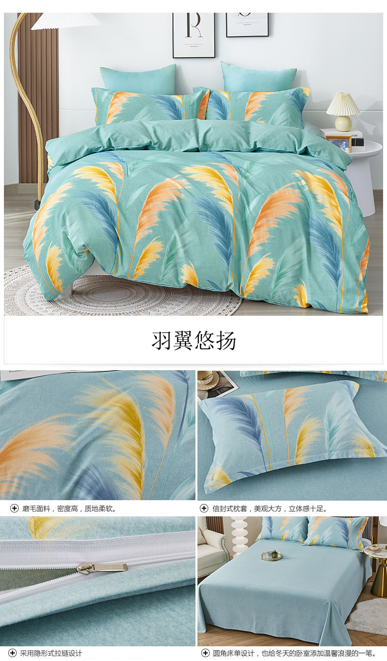 奥若拉立暖绒全棉磨毛四件套200*230CM