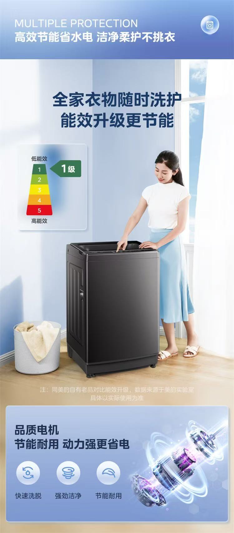 美的(252255)MB12L2 波轮全自动洗衣机 金属钛 门盖高光黑,白玻,普通银丝印 钢化玻璃 波轮式 220V,1Ph 50Hz