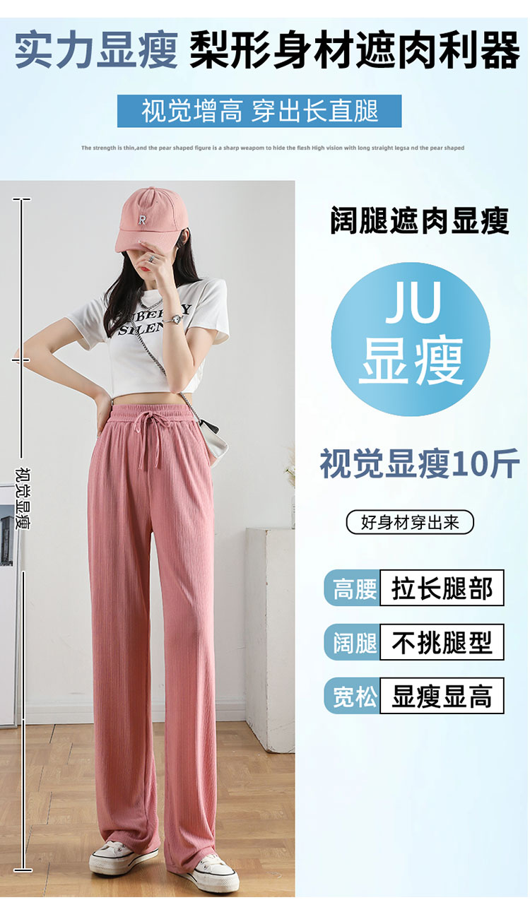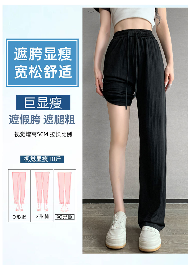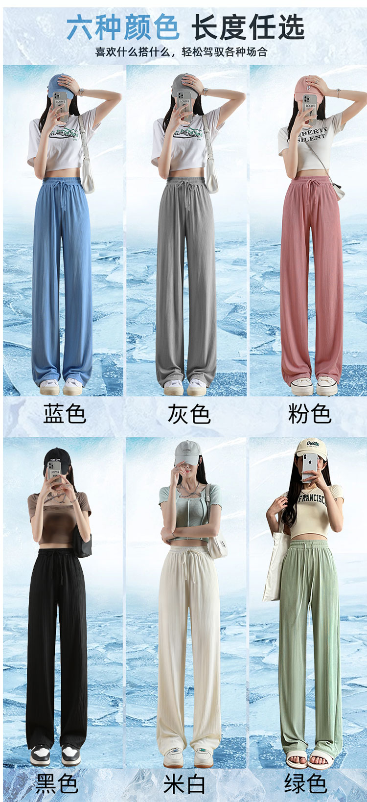 【YW】无忧购夏季薄款小个子宽松垂感直筒休闲冰丝阔腿裤Z110(截单后7天发货)