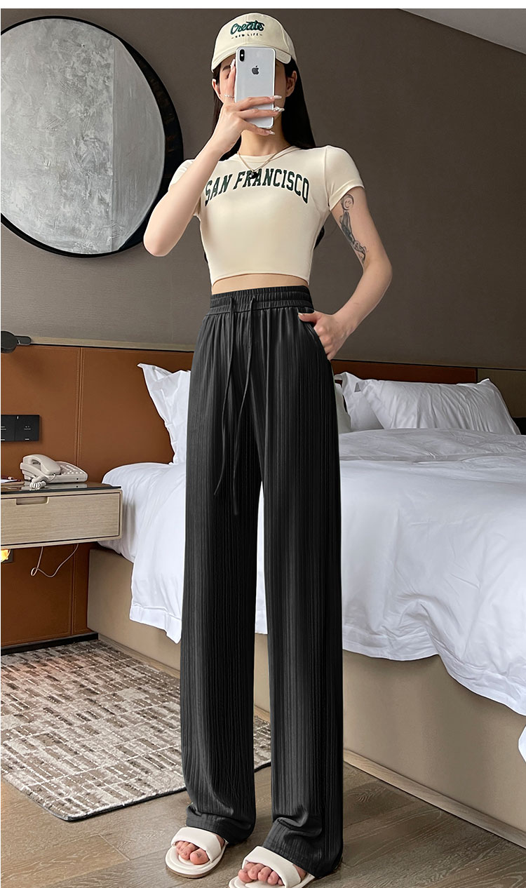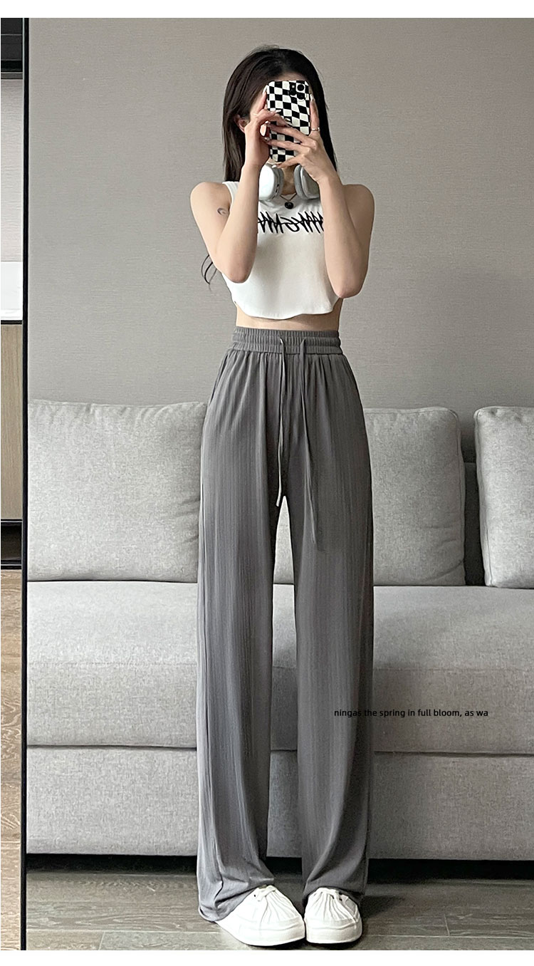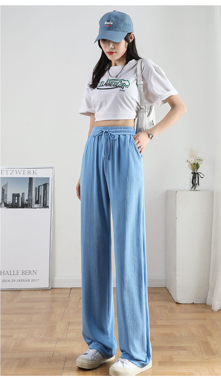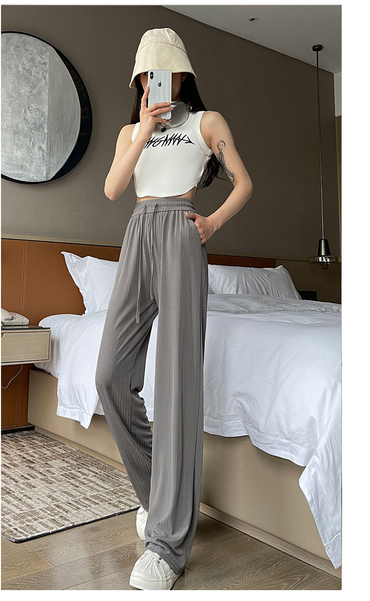 【YW】无忧购夏季薄款小个子宽松垂感直筒休闲冰丝阔腿裤Z110(截单后7天发货)