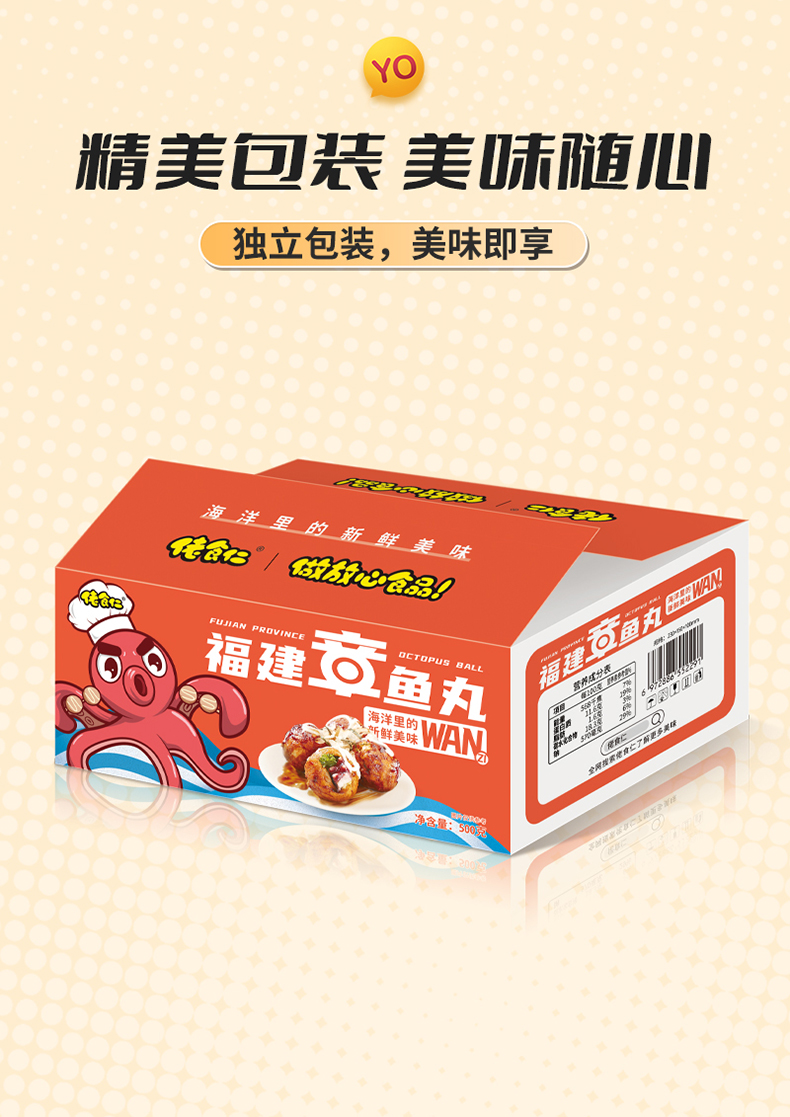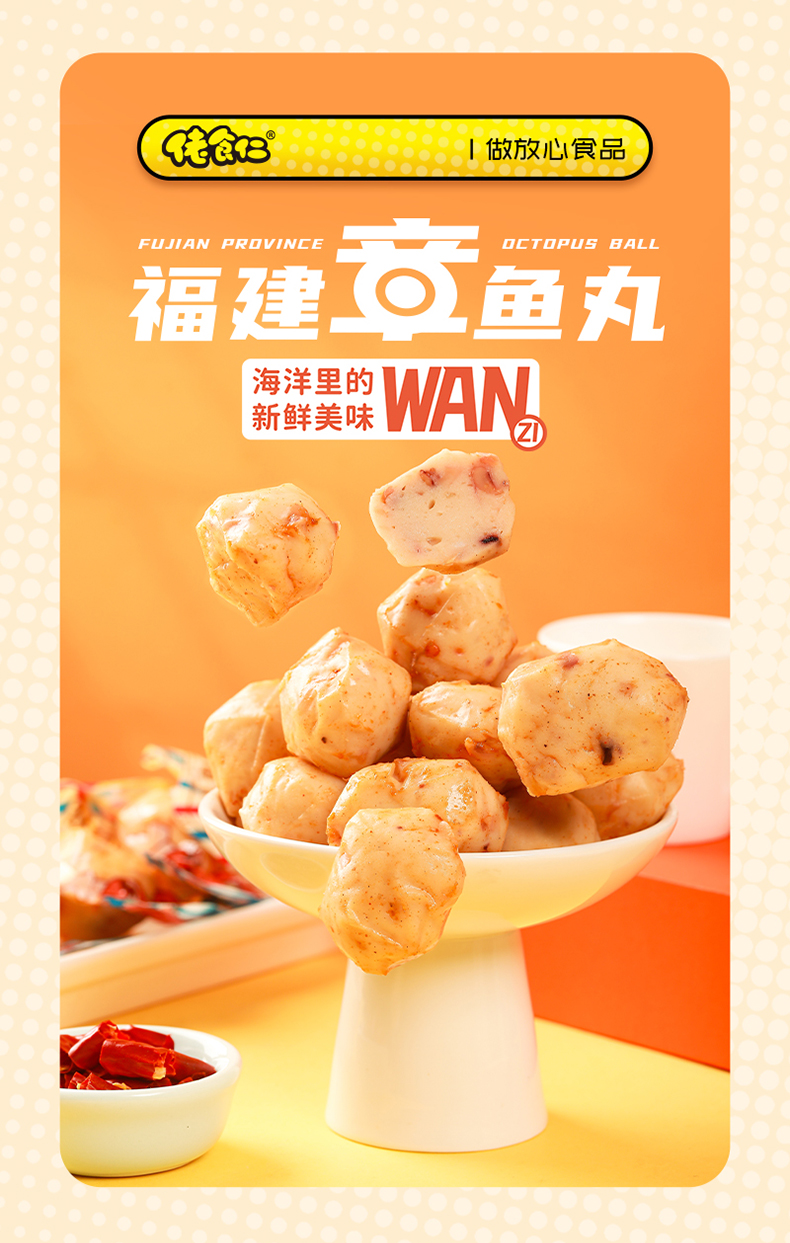 佬食仁福建章鱼丸整箱香辣味烧烤即食海味Q弹小零食海鲜休闲食品【500g/箱约25枚】