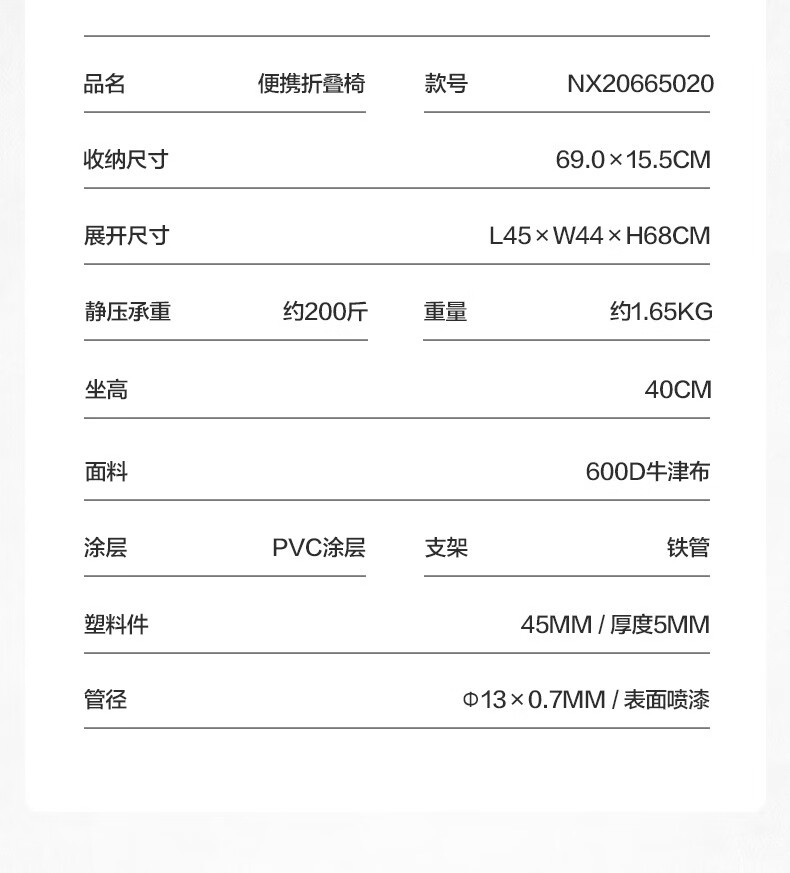 牧高笛(MOBIGARDEN)折叠椅 户外露营便携式折叠椅迷你靠背椅休闲钓鱼椅NX20665020