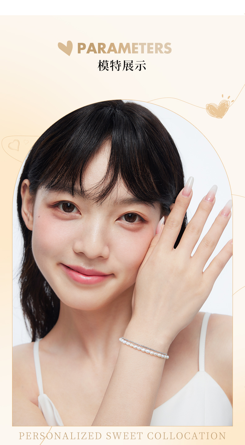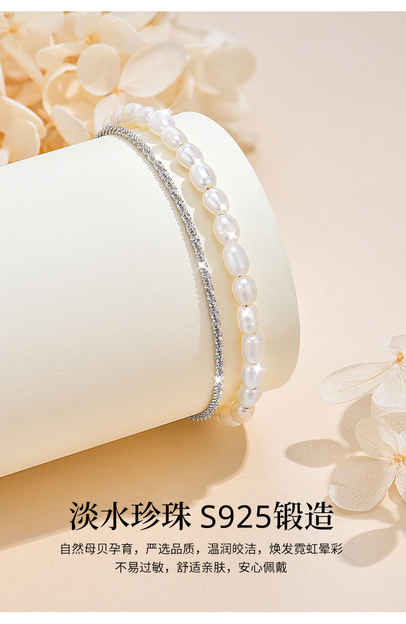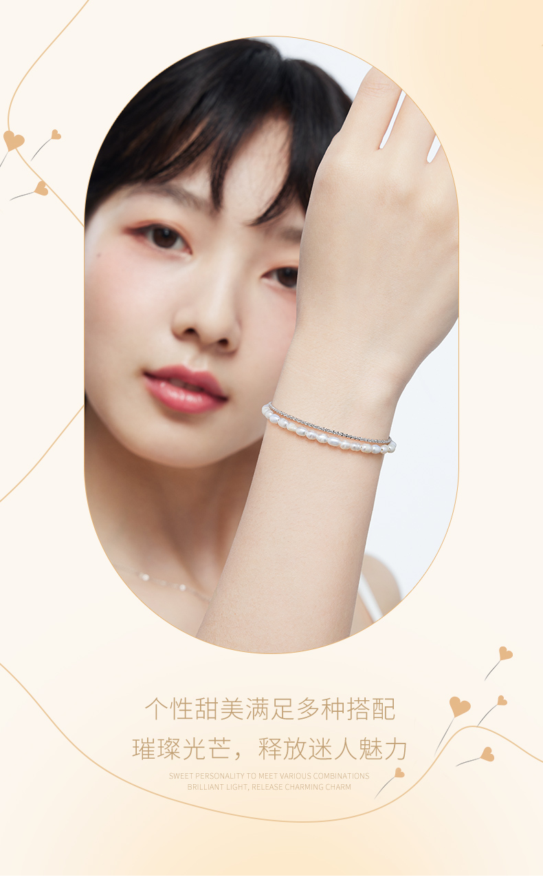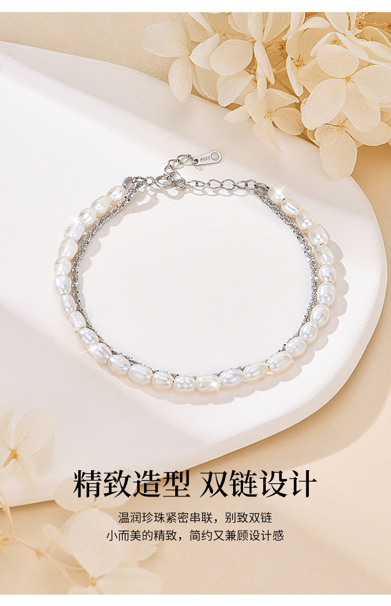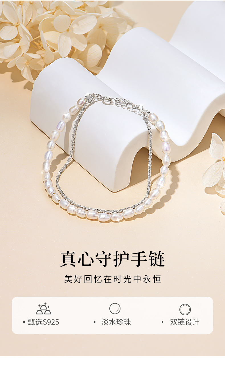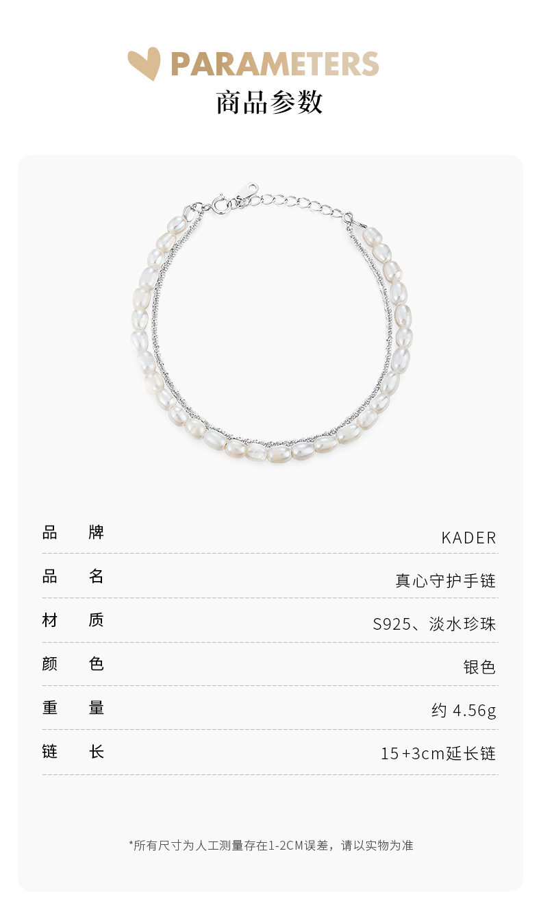 卡蒂罗/KADER 真心守护手链 925银淡水珍珠法式轻奢优雅复古赫本风双链叠戴链 原创设计甜蜜饰爱手饰 七夕礼盒款