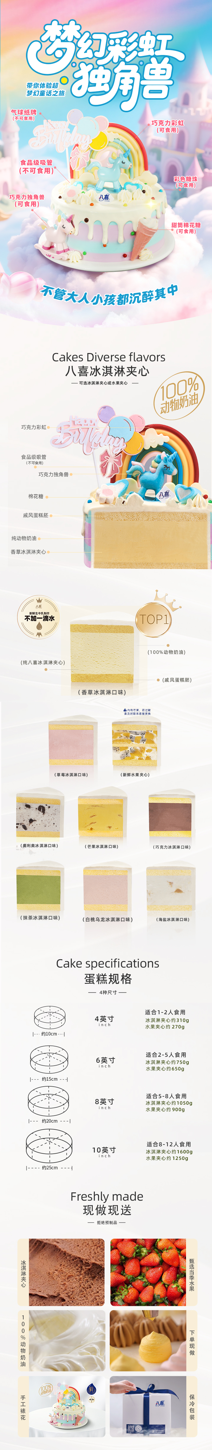 【梦幻彩虹独角兽】水果/冰淇淋生日蛋糕
