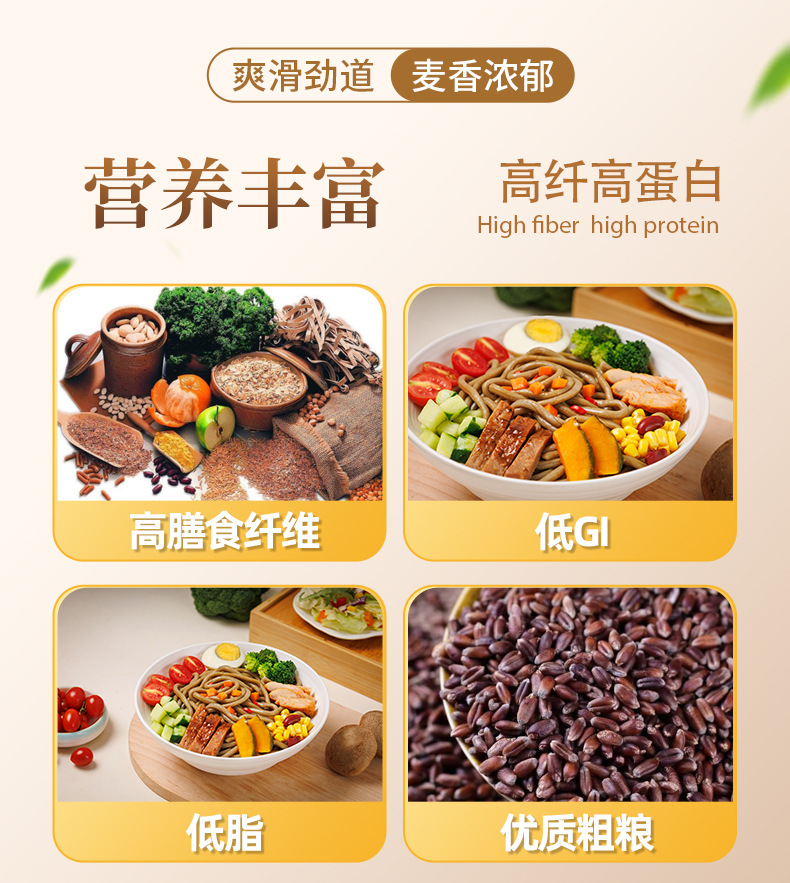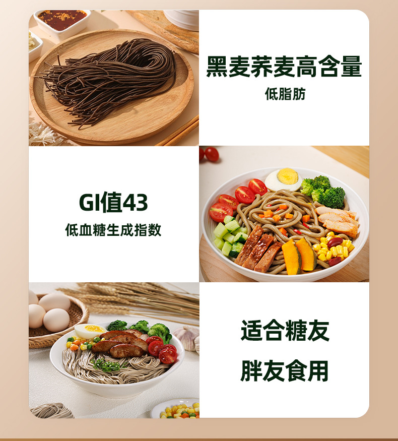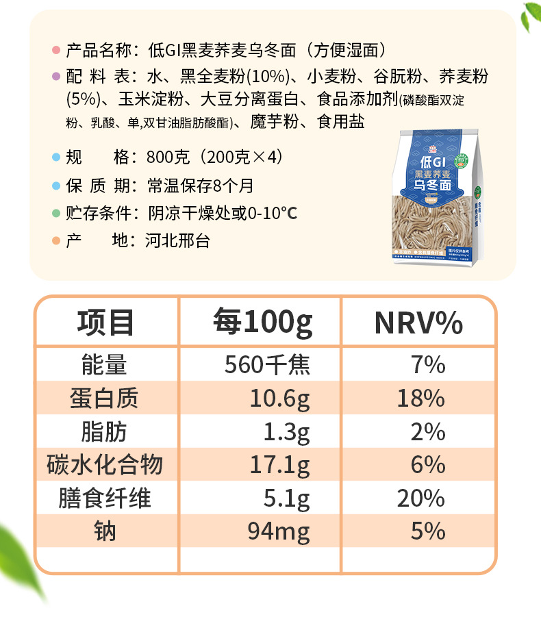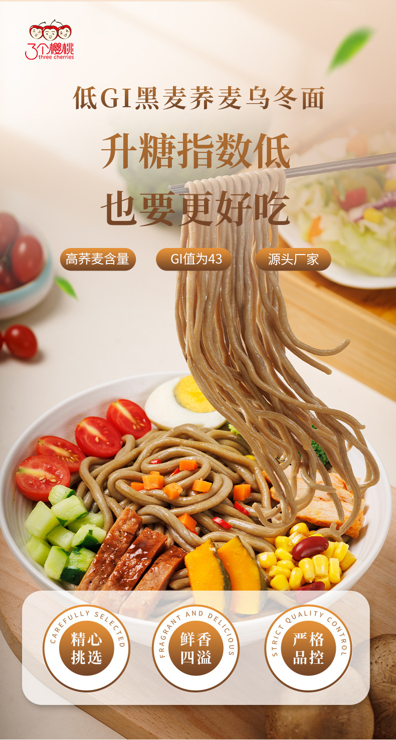 【低GI乌冬面黑麦荞麦日式拉面免煮方便速食袋装控糖面条】三个樱桃低GI黑麦荞麦乌冬面800g*2袋