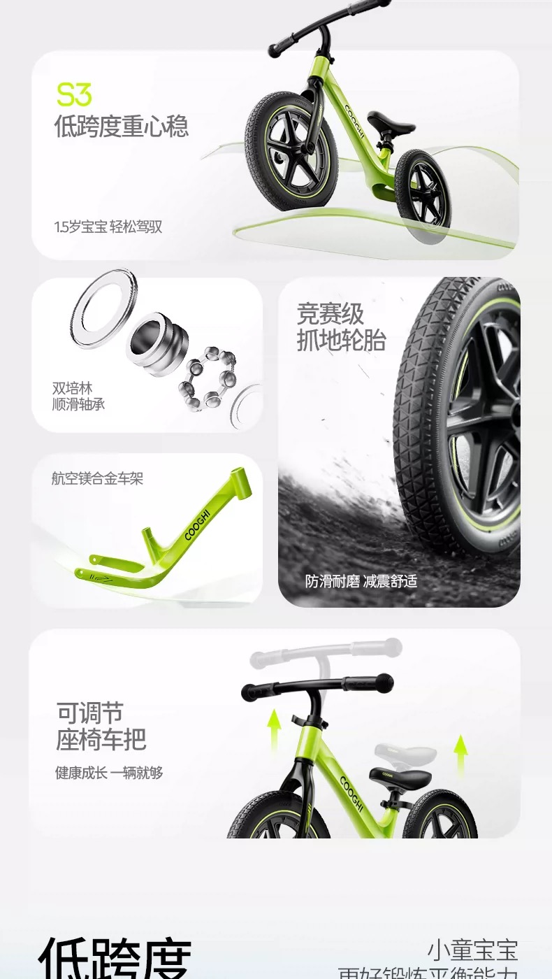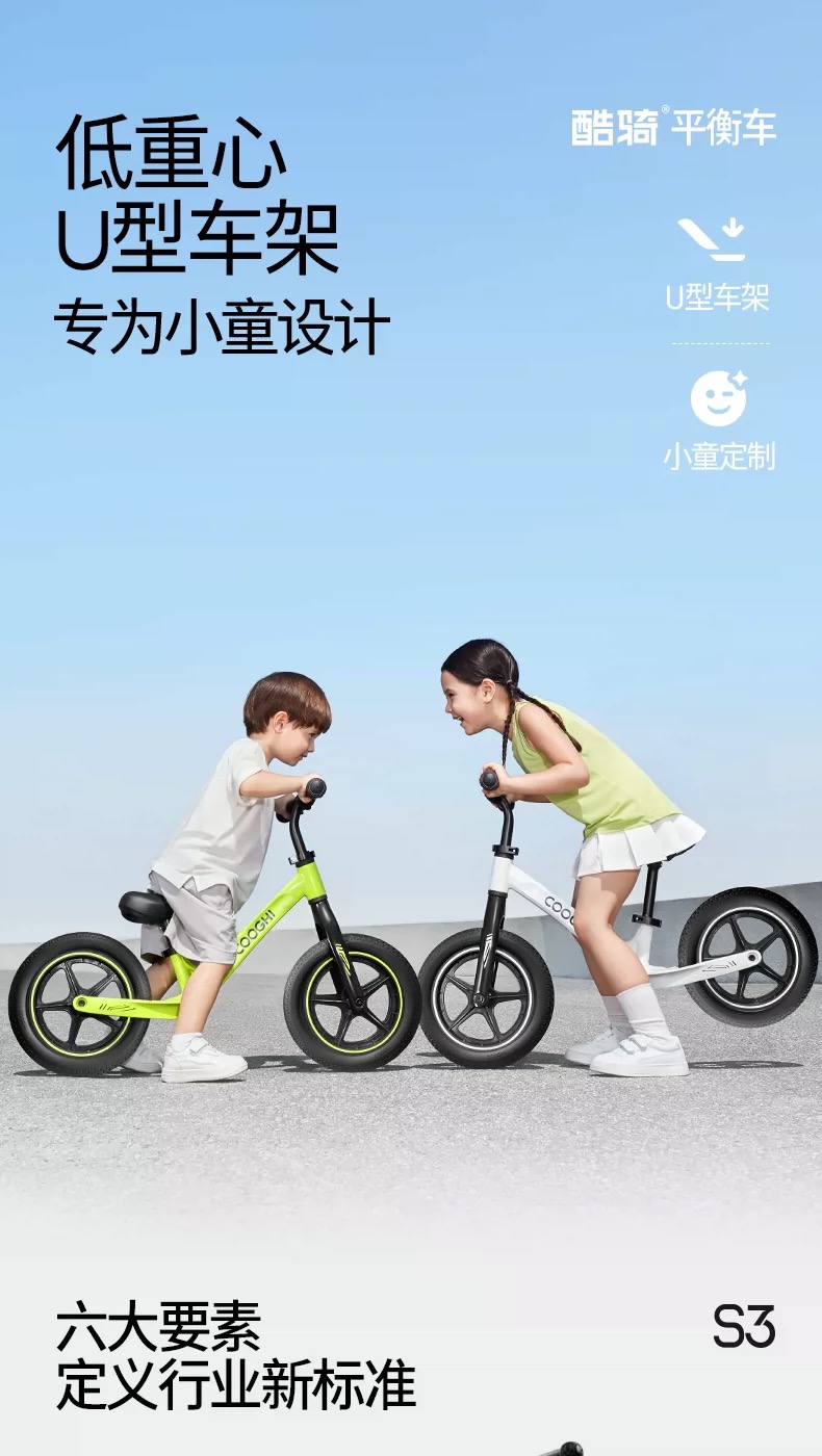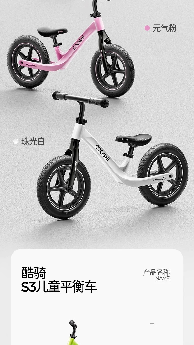 酷骑儿童平衡车S3宝宝滑步车1-2-3-6岁小童学步溜溜车入门自行车